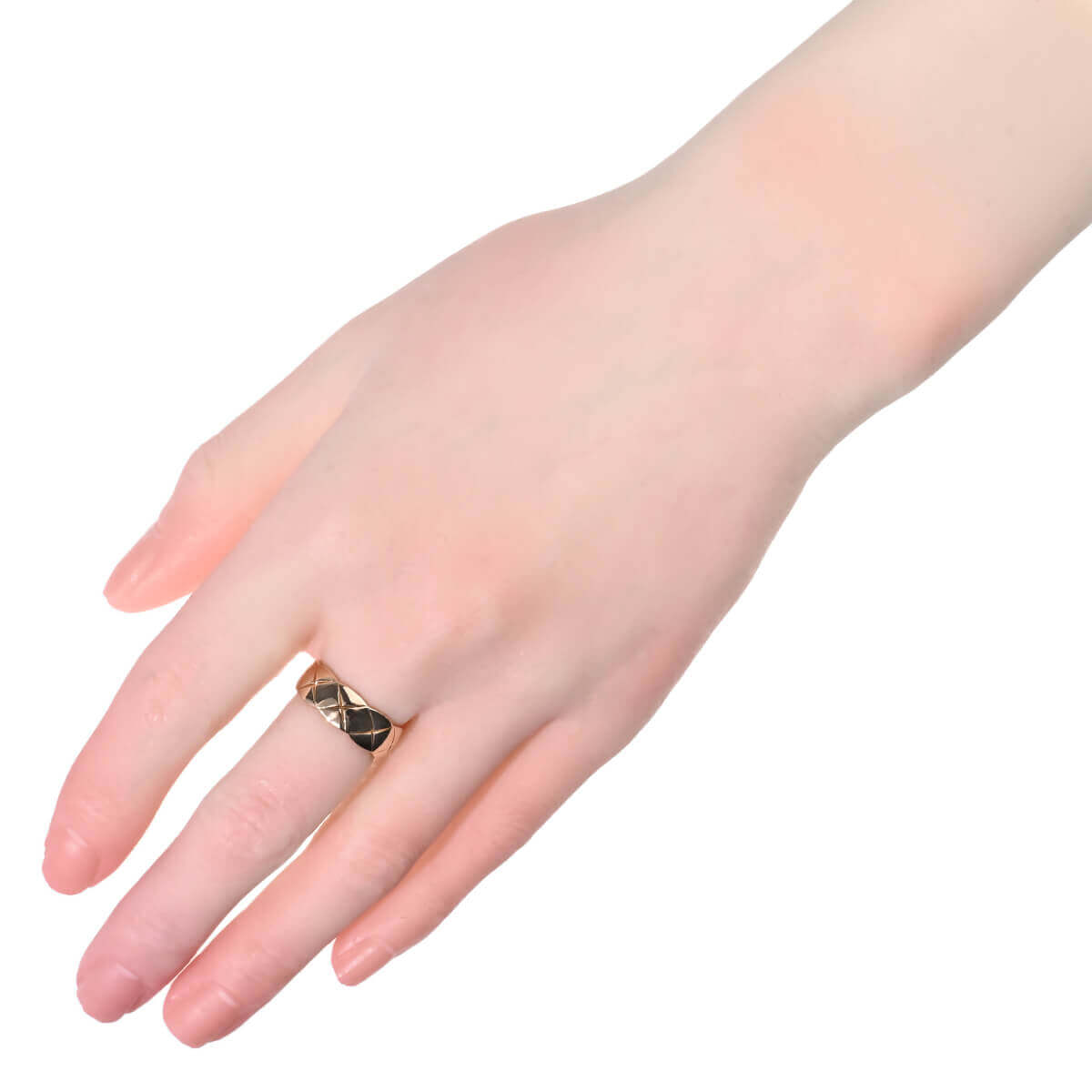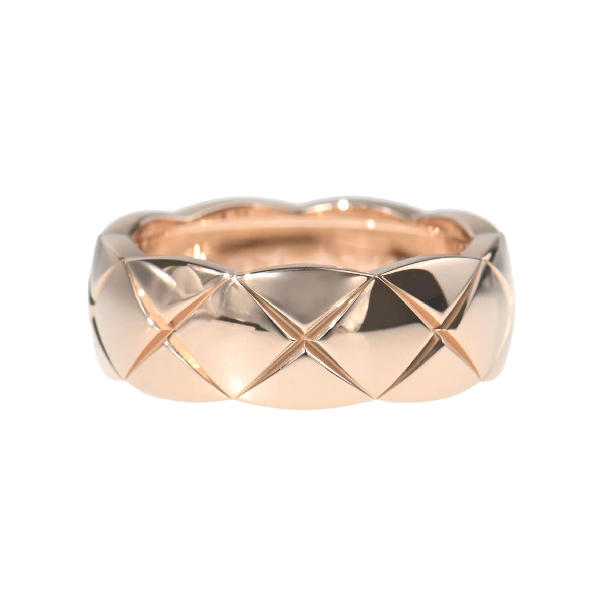 艶めくマテリアルが際立つ、『CHANEL(シャネル)』「ココクラッシュ」コレクションのベージュゴールド製ミディアムリングです。「ココクラッシュ」はマトラッセのキルティングパターンがマテリアルに美しく刻まれた、アイコニックでモダンなコレクション。1955年以来、シャネルのシンボルのひとつとなったキルティングモチーフを織りなす、立体的なフォルムと切り込み模様との融合が美しいリング。ひとつひとつ手仕事で仕上げられるそのプロダクトは完璧なまでの艶めきを放ち、着け心地まで考慮されたなめらかな曲線とモダンでエッジィなデザインが、シャネルらしい個性を惹き立たせています。女性を美しくさせることに情熱を燃やした、シャネルらしさも感じることができる、洗練された存在感をもつトレンドのファインジュエリーです。