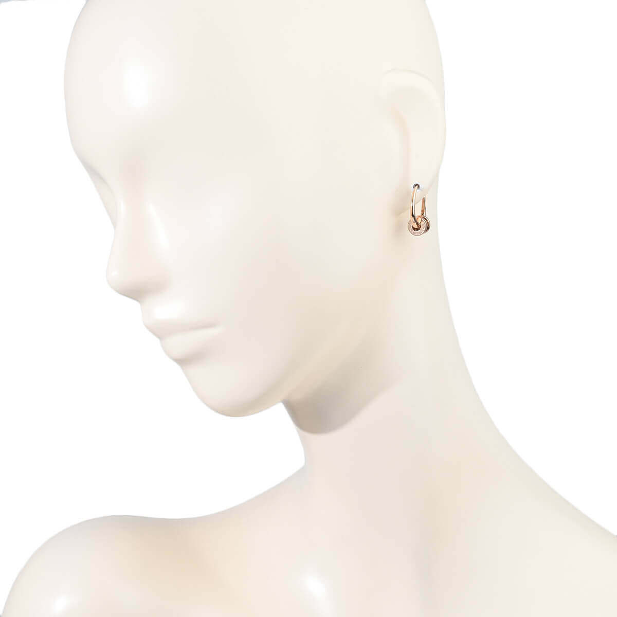 世界でもっとも有名な円形競技場コロッセオからインスピレーションを得てデザインされている『BVLGARI(ブルガリ)』「B-ZERO1」コレクションは、創造的なブルガリの世界観を真に表現し、“永遠の都”ローマの壮大さに映し出された、過去、現在、そして未来の調和を表すシンボルなんだとか。流麗な曲線が描き出すフォルムが印象的なビーゼロワンのミニチュアチャームがフープにひとつづつあしらわれた、ビー・ゼロワンピンクゴールド製ピアスです。フープに沿ってゆらめく、イタリアンデザインの真の象徴でもある大胆で特徴的なスパイラルが、耳元で気品を漂わせて一層の存在感と光彩を放ちます。