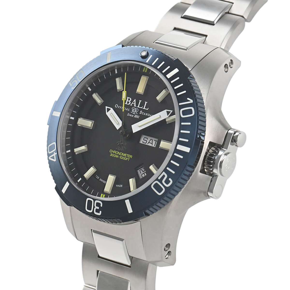 実用性の高い時計作りで知られる「ボールウォッチ」。こちらはチタンケースにチタンとステンレスのコンビブレスレットを採用したダイバーウォッチ「エンジニア ハイドロカーボン サブマリン ウォーフェア」。