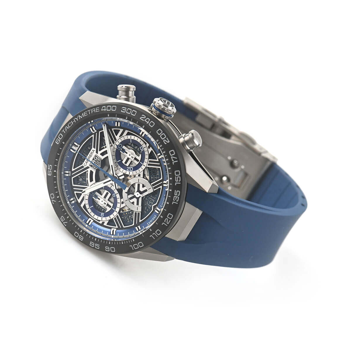 2024年に発表された【カレラ クロノグラフ エクストリームスポーツ】が入荷しました。ケースにはチタンとセラミックを採用し堅牢かつ軽量に仕上げられており、スケルトンの文字盤にブルーの差し色がスポーティさを更に引き立たせています。
