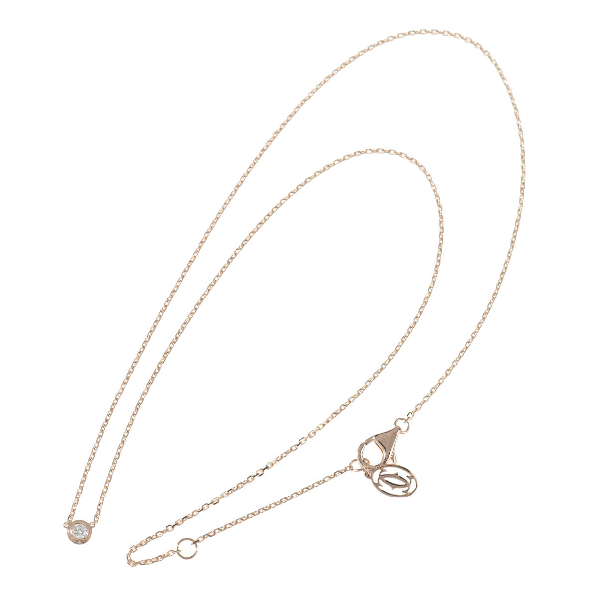 英国王エドワード7世に“Jeweller of kings,king of jewellers(宝石商の王であるがゆえに、王の宝石商)”とまで評価された、世界5大ジュエラーのひとつでもある、世界でもっとも有名なハイジュエリーメゾンのひとつ、ルイ=フランソワ・カルティエが1847年にフランス・パリに創業した、老舗高級宝飾メゾン『Cartier(カルティエ)』。1938年のモデルをエレガントに再解釈した「ダムール」コレクションの、クローズドセッティングされたダイヤモンドがひと粒あしらわれた、ピンクゴールド製エクストラスモールサイズのペンダントネックレスです。旧コレクション名の「ディアマン レジェ ドゥ カルティエ」は“軽やかに身にまとう”という意味を持ち、気軽に身につけられるシンプルでタイムレスなデザインが魅力。軽やかで繊細なデザインが、カルティエらしく優美で洗練された印象をもたらします。