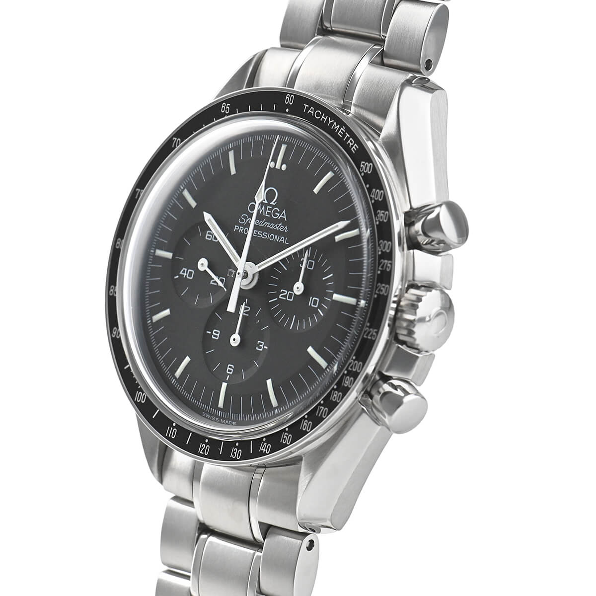 機械式クロノグラフの代名詞的存在といっても過言ではない「スピードマスター プロフェッショナル」。信頼性、実用性、デザインと全てにおいて高い次元でバランスが取れたモデルです。風防には今や少なくなってきたプラスチック風防を使用しており、独特の味わいがございます。