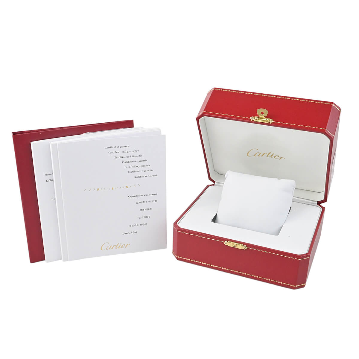 シンプルな美しさの中にブルースチールの針やローマンインデックスなど、カルティエらしさに溢れています。