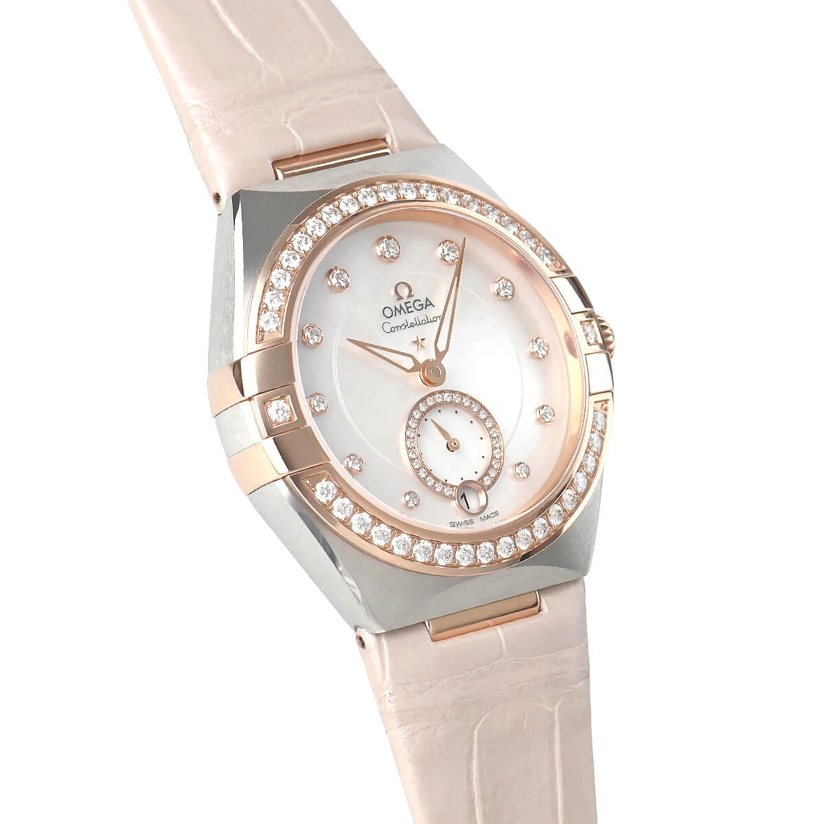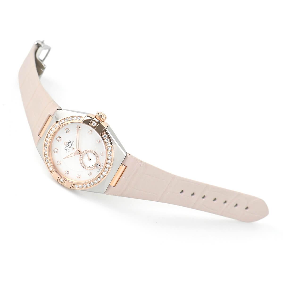 1982年にアイキャッチとなる「爪」を3時と9時位置に採用した、コンステレーション。34mmケースで、ホワイト・マザーオブパールダイアルには11ポイントのダイヤモンドをセッティングし、ベゼル部分にもパヴェセッティング。