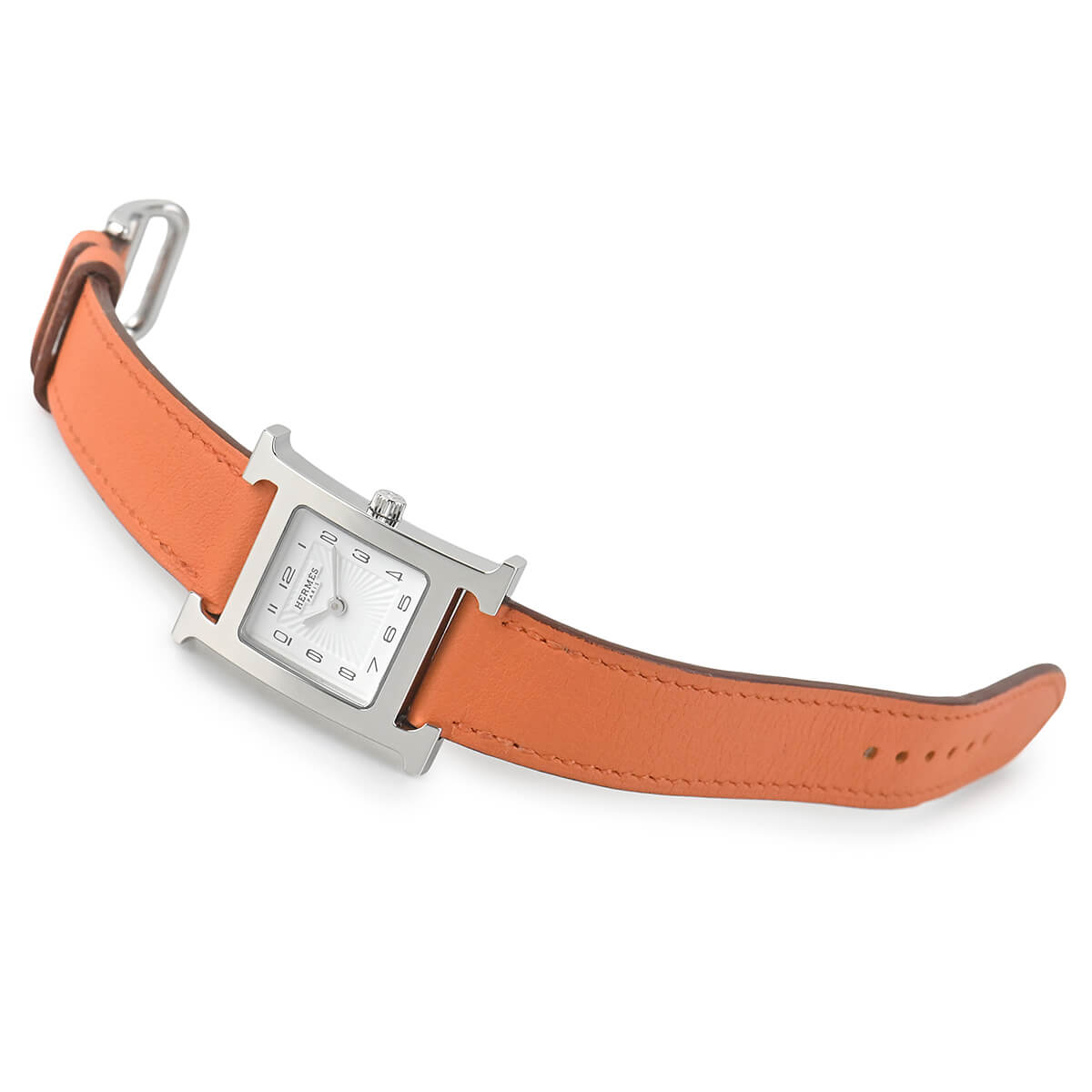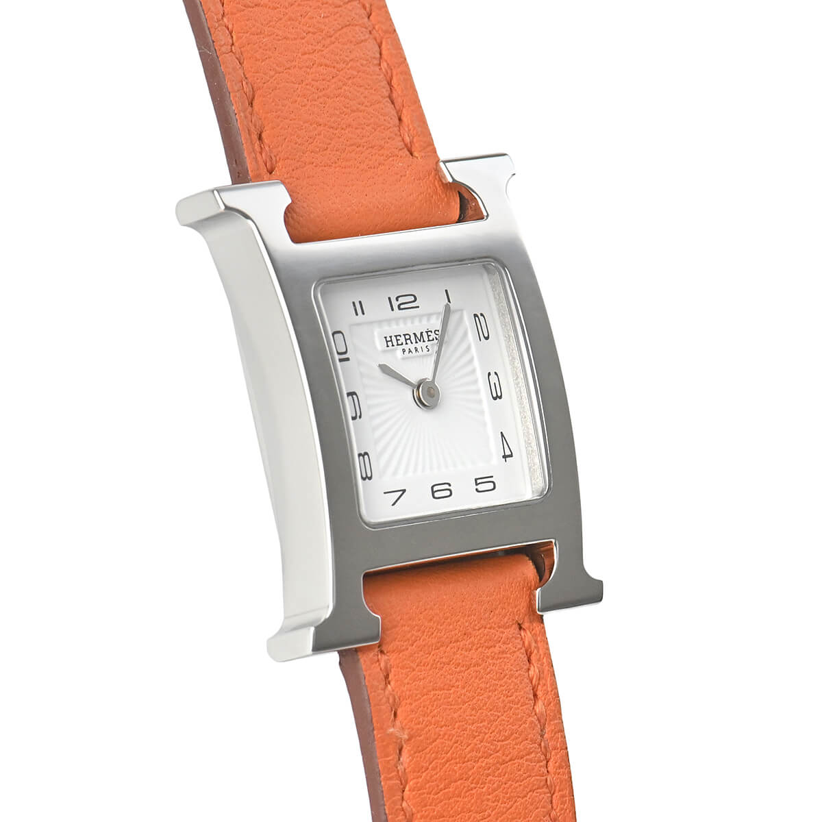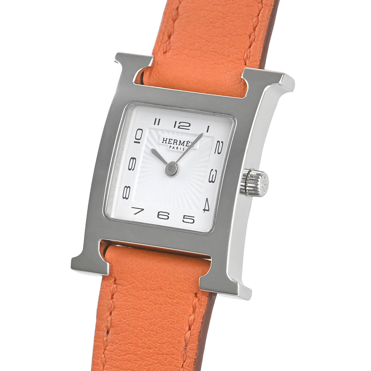 エルメスの頭文字「H」をモチーフにデザインされた「Hウォッチ」。エルメスの腕時計といえば、このモデルを想像される方も多い人気モデルです。今回入荷のこちらはホワイトアラビアダイヤルのモデル。