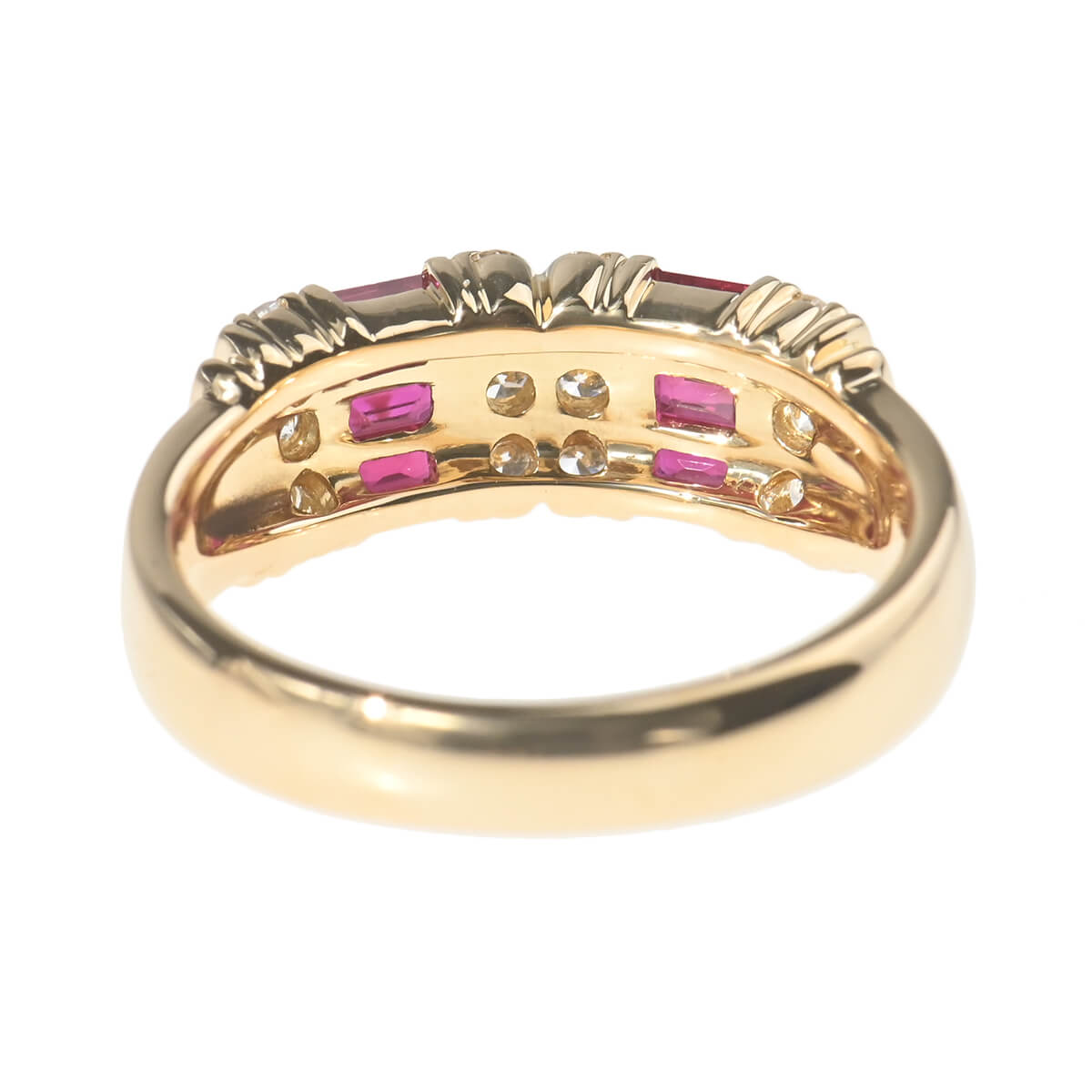 日本と世界の人々が、身に着けて宝石の美しさを楽しみ心地よさを感じ、次の世代に受け継がれてゆくのにふさわしい装身具づくりをモットーに掲げるドメスティックジュエリーブランド『SUWA(スワ)』。SUWAは1908年(明治41年)の創業以来三代に渡り、高品質で美しい宝石を100年以上追い求めています。ルビーの情熱的なレッドとまばゆく煌めくダイヤモンド、そしてゴールドのマテリアルがエレガントなコントラストを魅せているリング。連鎖した美しい深紅のルビーを際立てる、イエローゴールドのバーが印象的。高さが抑えられたリングはひっかかりがなく、着け心地もなめらかで、ドメスティックブランドらしい丁寧なつくりも魅力です。