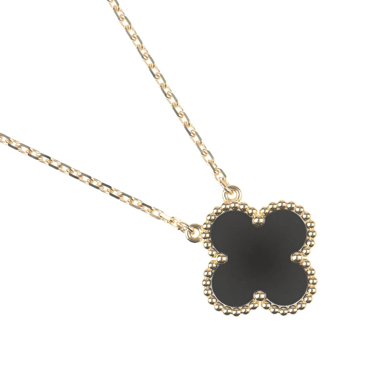 1968年に初めて誕生した幸運のシンボル「アルハンブラ」の特徴を受け継ぎ、『VanCleef&Arpels(ヴァンクリーフ&アーペル)』ならではの独創性と時を超えるエレガンスを湛える「ヴィンテージアルハンブラ」コレクションは、エレガントで清楚、控えめでありながら洗練された、メゾンを代表するアイコン。クールな印象の漆黒のオニキスと愛らしいモチーフ、そして周りを囲む可憐なゴールドビーズの掛け合わせが、“極上の甘さ”を生んでいるイエローゴールド製「ヴィンテージアルハンブラ」ペンダントです。たくさんつけてもしつこくなく、むしろ“素敵”にまとまる、不思議な個性をもつアルハンブラはコレクションで揃えていって、バリエーションを魅せるのも。ひとめでそれとわかるラッキーチャームを、どのタイミングで、どのカラーで迎えるかを考えるのも楽しい、エレガントに映えるハッピーな魅力にあふれたコレクションジュエリーです。