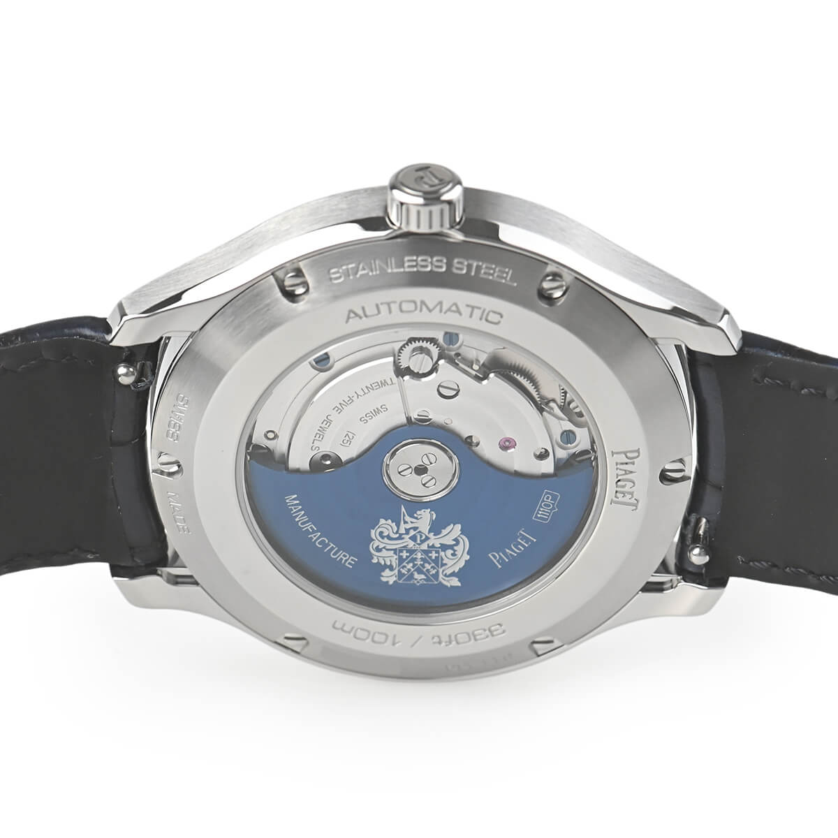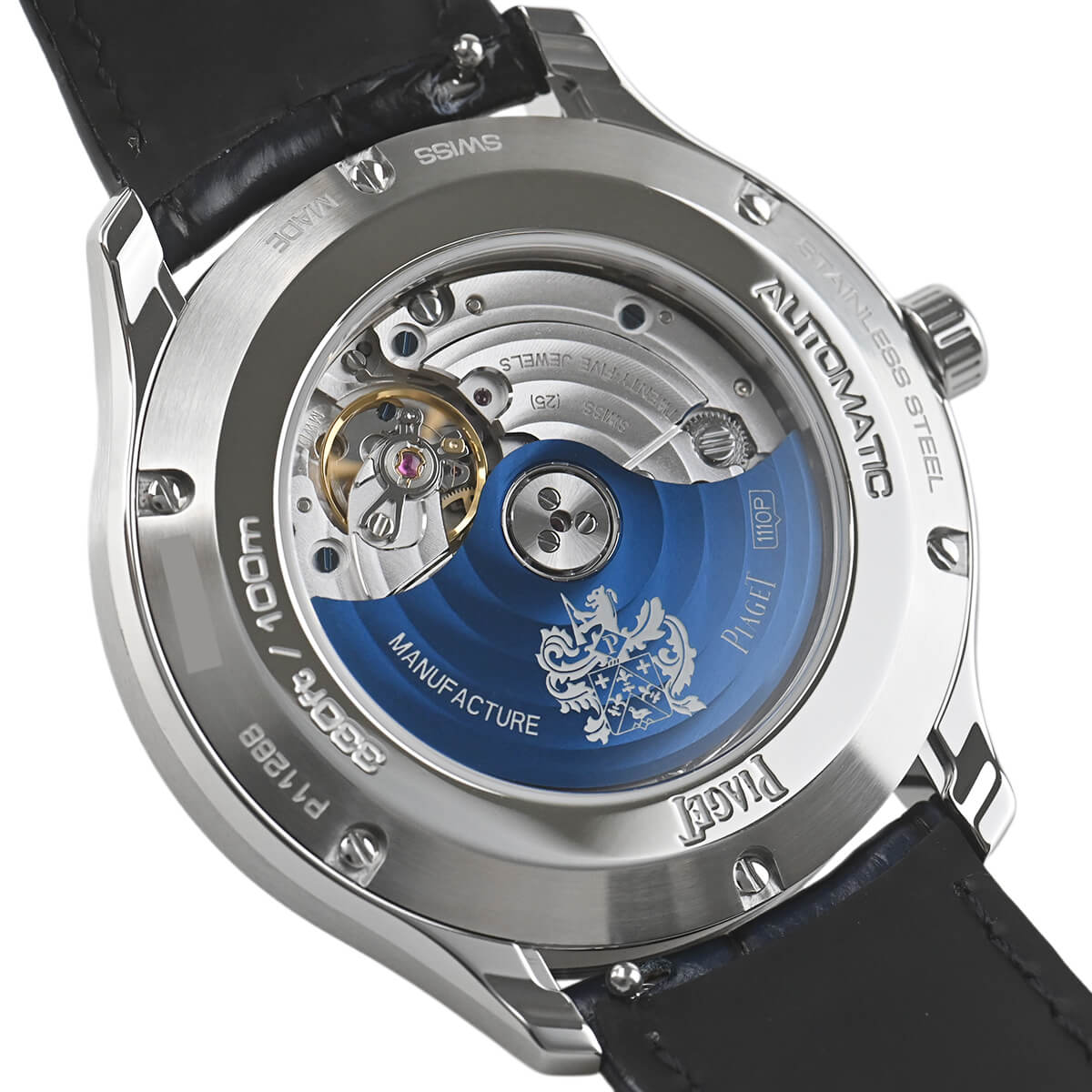シースルーバックからは、新しく開発された1110Pピアジェ自社製極薄自動巻ムーブメントが鑑賞できます。