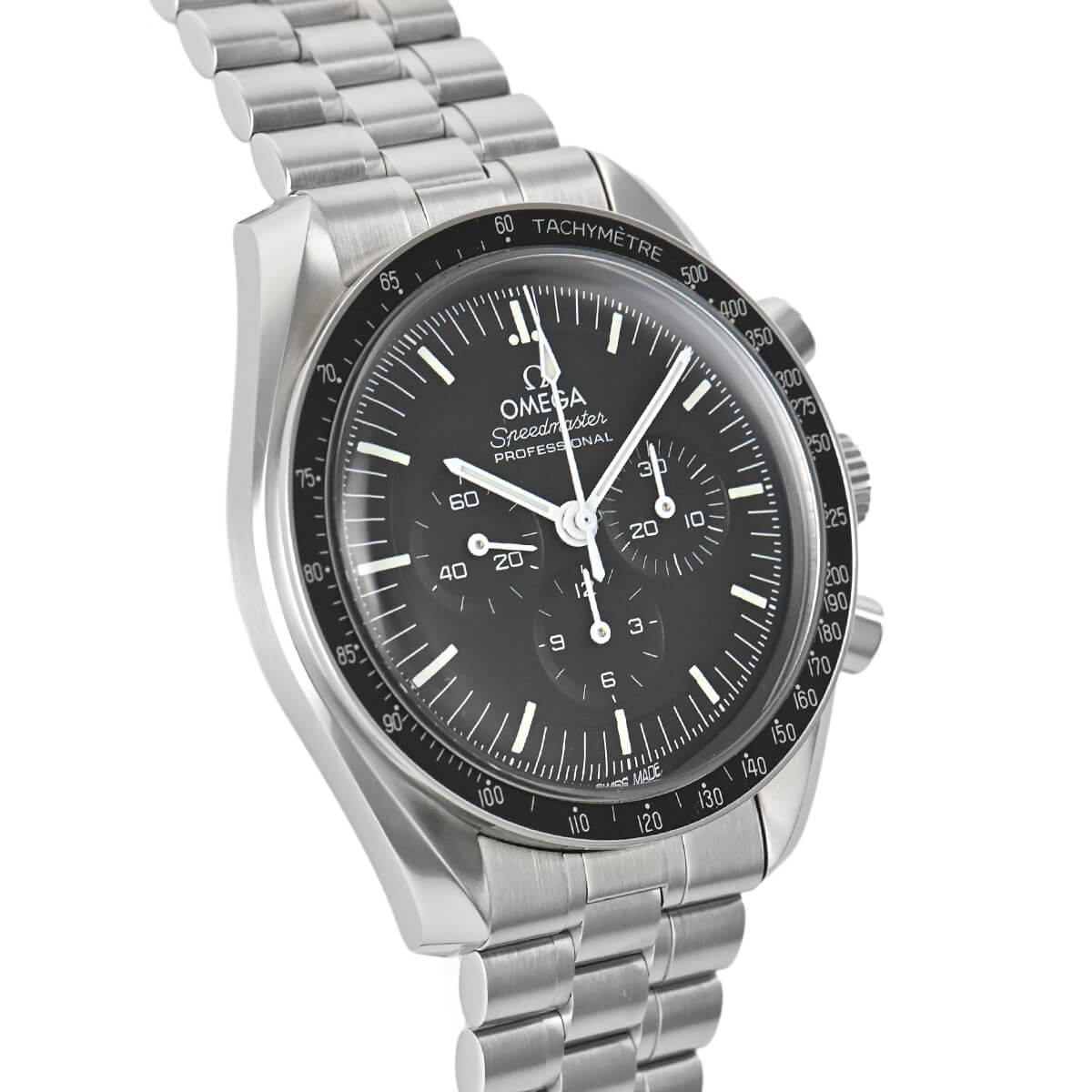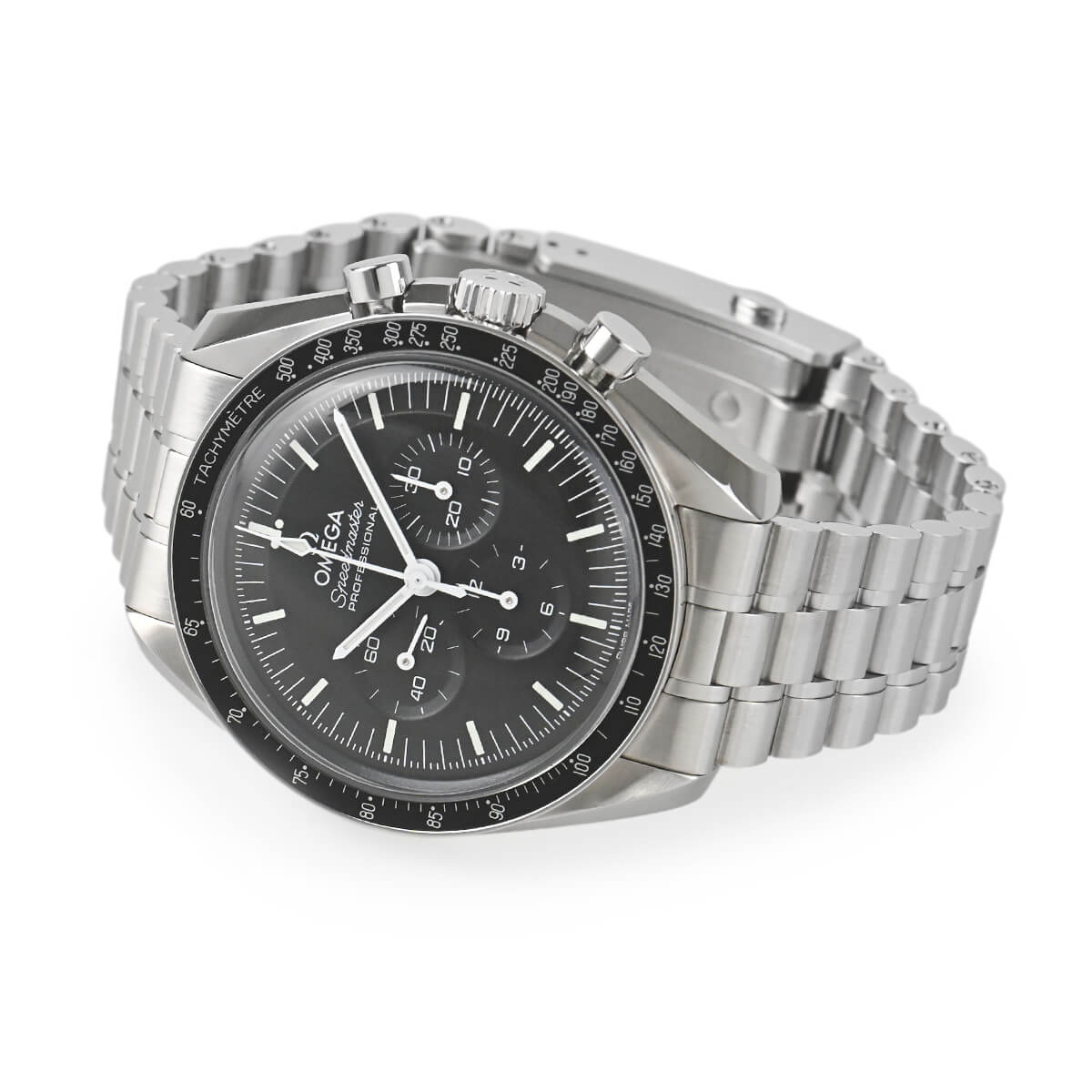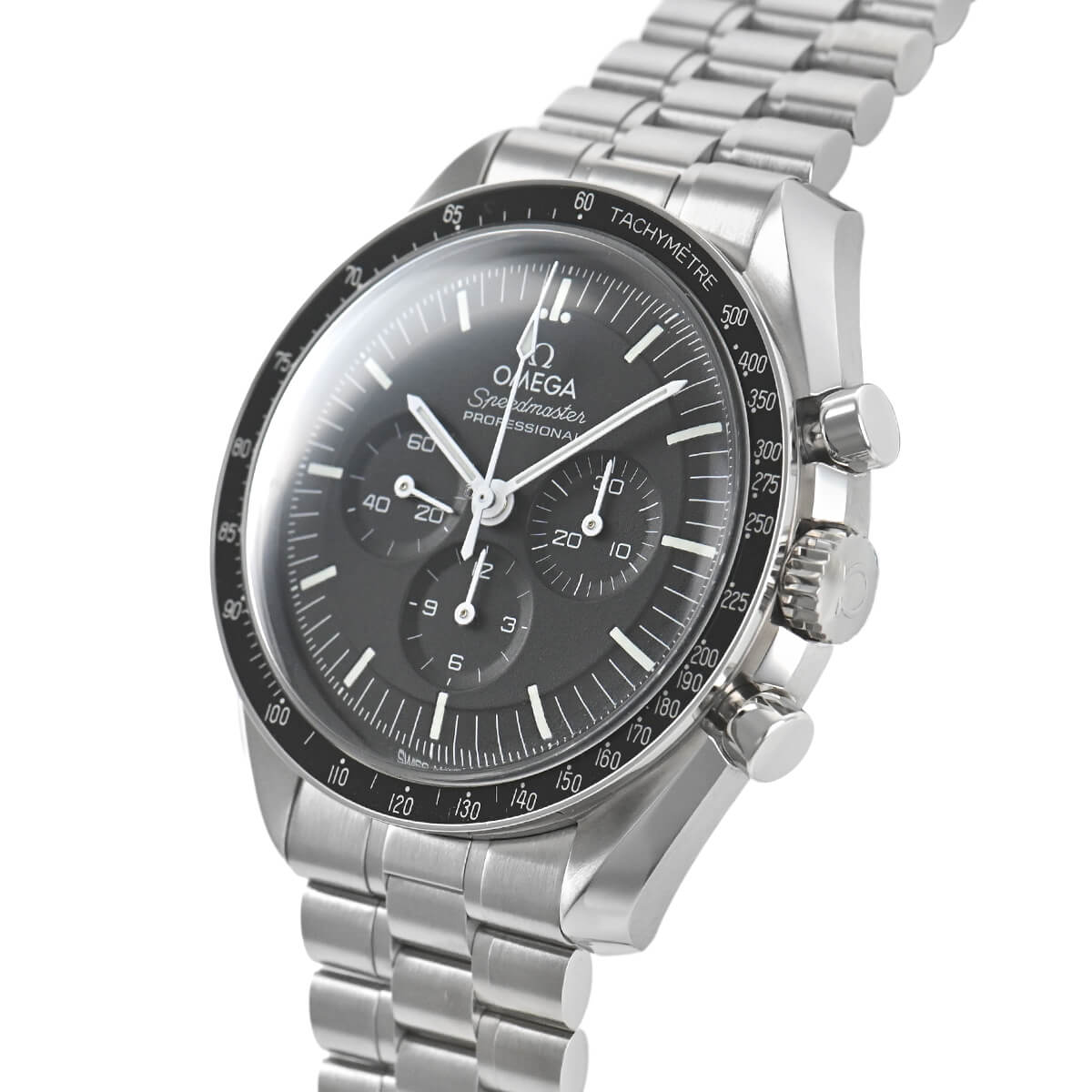 6度に渡る月面着陸プロジェクトの全てに提携された、伝説のクロノグラフ「スピードマスター プロフェッショナル」。陽極酸化処理が施されたアルミニウム製ベゼルリングには、実際に月面で着用された4thモデルのリングデザインに倣い「ドットオーバー90」のデザインが採用されています。