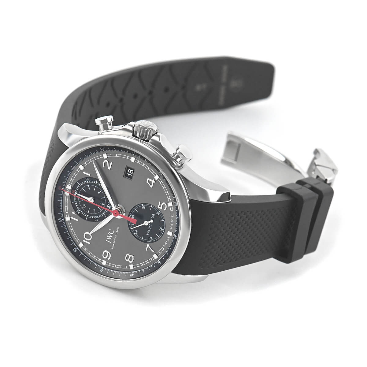ポルトギーゼシリーズにおけるスポーツモデルの「ポルトギーゼ・ヨットクラブ・クロノグラフ」。45.4mmだったケース径を43.5mmにダウンサイジングしたモデルです。