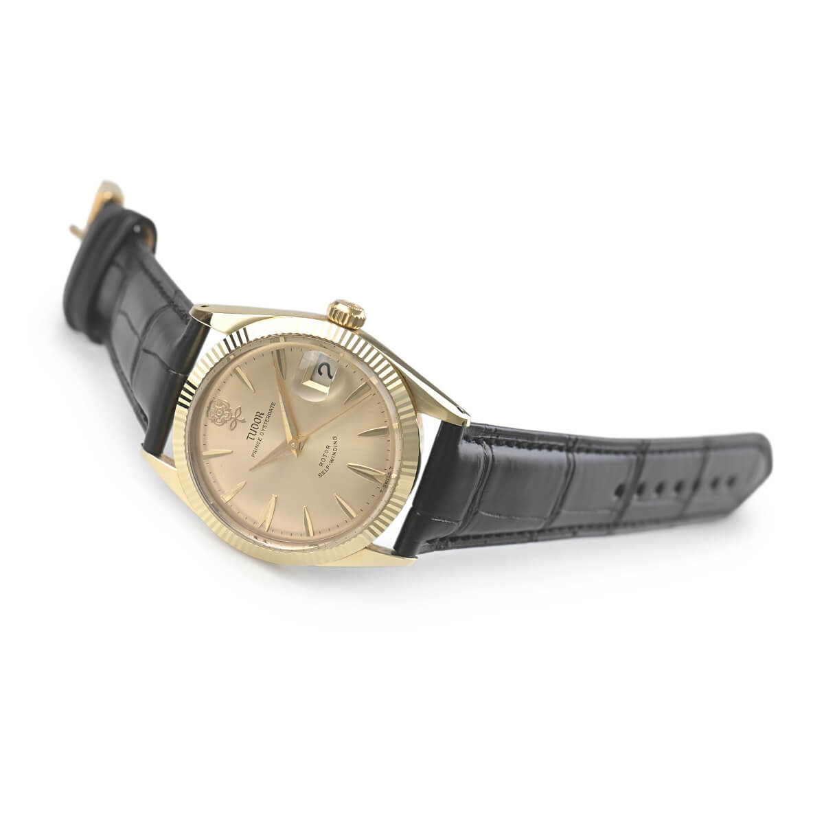 1960年代後半〜1970年代前半に作られたと思われる「プリンスオイスターデイト 7964」。名門チューダー家の名前から付けられたブランド名にふさわしく、イングランドの紋章である薔薇をダイヤル上に配置。