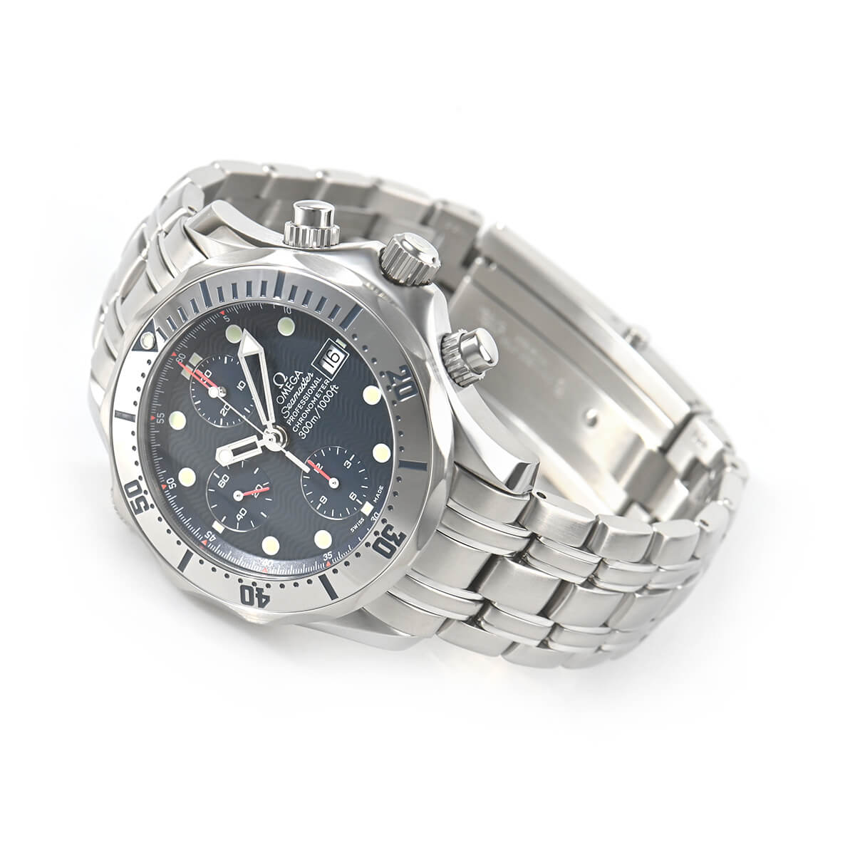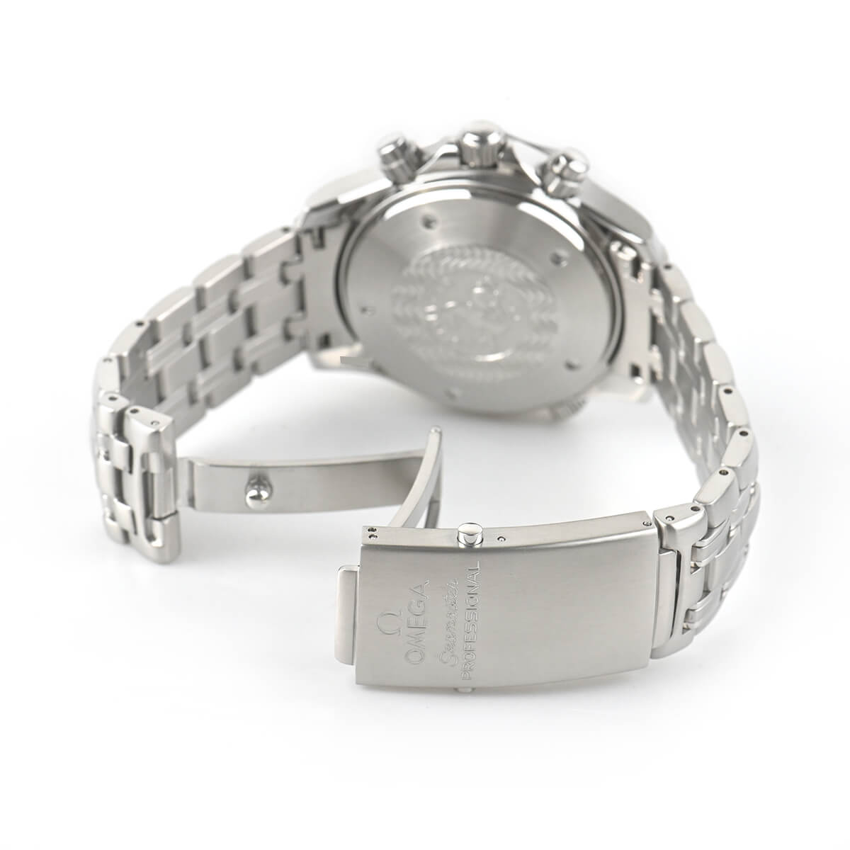 オメガのダイバーウォッチを代表するシーマスタープロフェッショナル。ヘリウムガスエスケープバルブを搭載した本格的ダイバーズクロノグラフです。