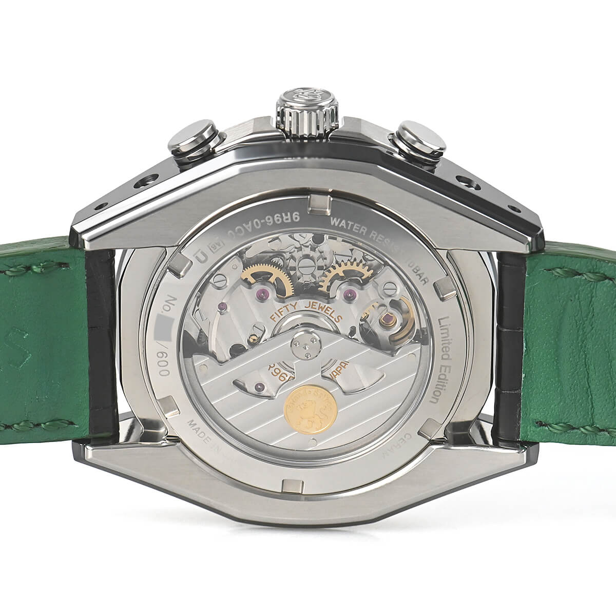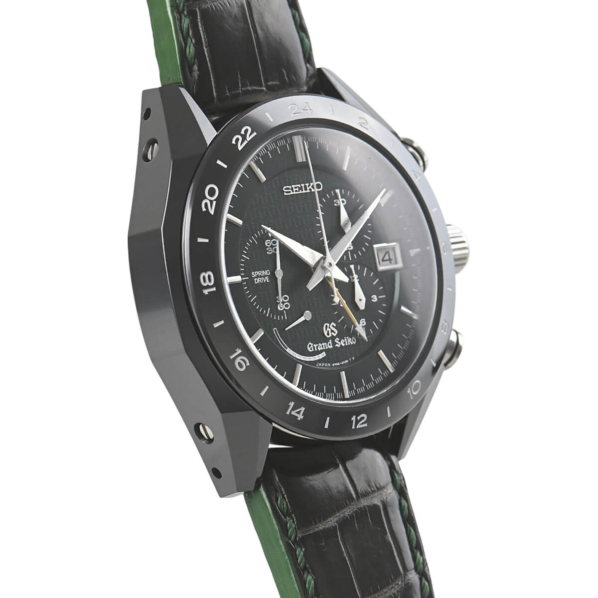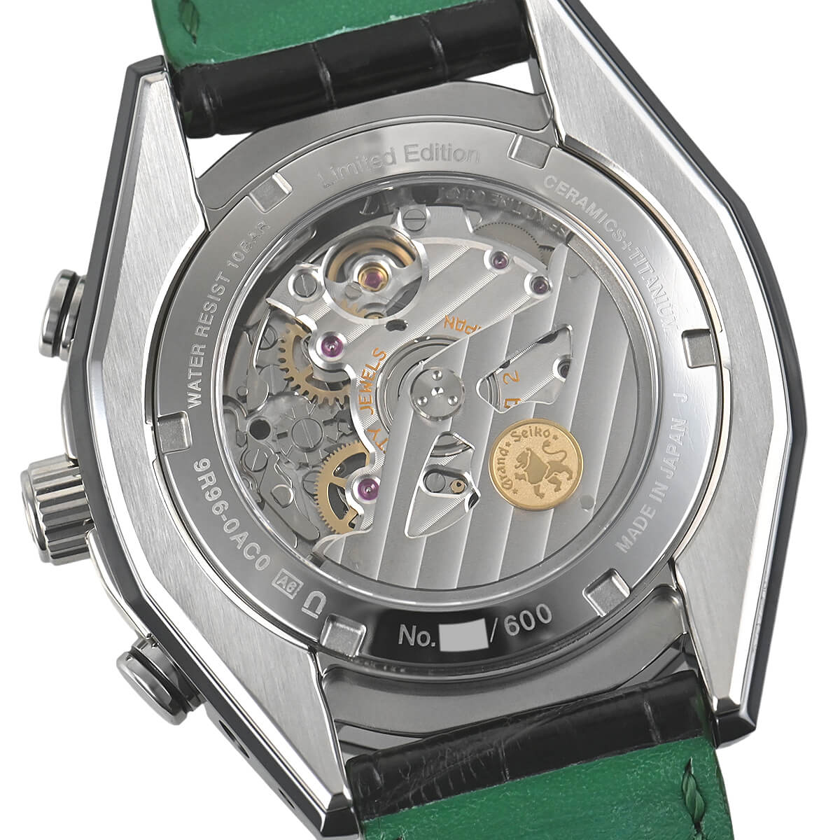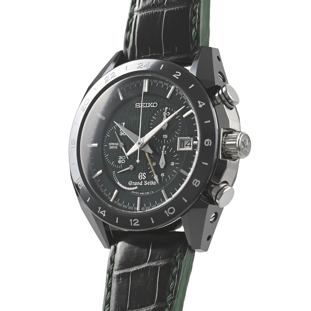 アウターケースにジルコニア・セラミックスを、インナーケースにブライトチタンを採用したハイブリッドケースが特徴の「SBGC017」。スプリングドライブムーブメントを製造している信州の森に茂る樅(もみ)の木をモチーフとした「樅の木パターン」のダイヤルが目を惹く世界600本のリミテッドモデルです。