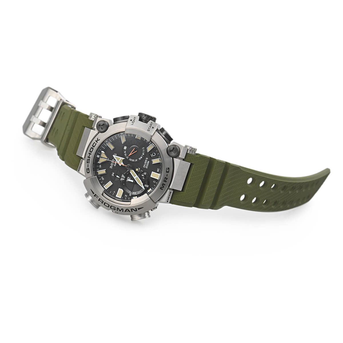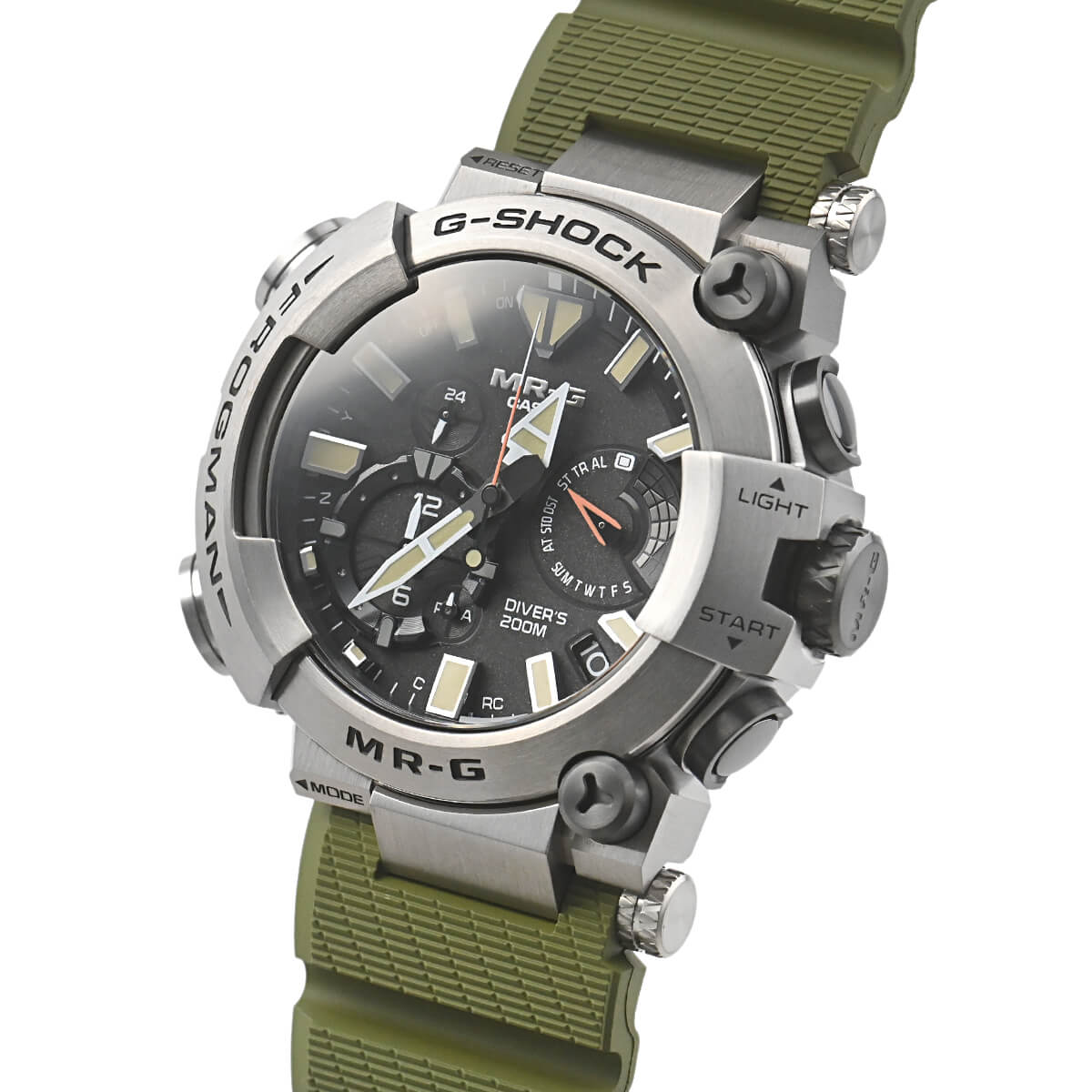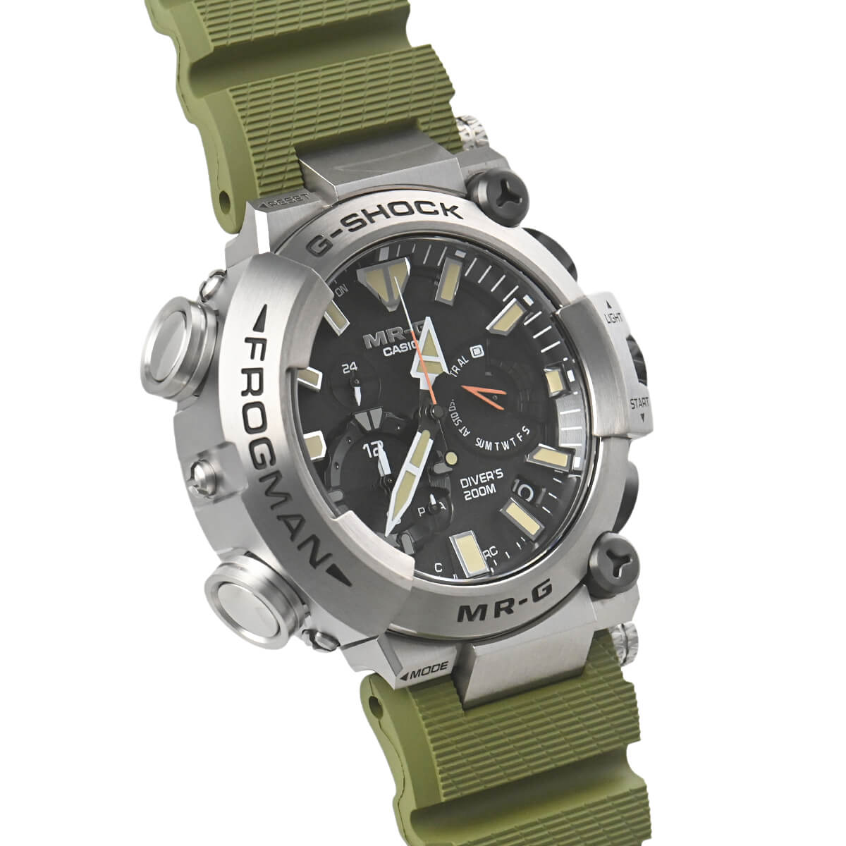 Gショックの最上位ライン「MR-G」。こちらの「MRG-BF1000RG-3AJR」は、ISO規格200m潜水用防水機能を持つダイバーズウオッチ「フロッグマン」にチタン外装を採用したモデルです。