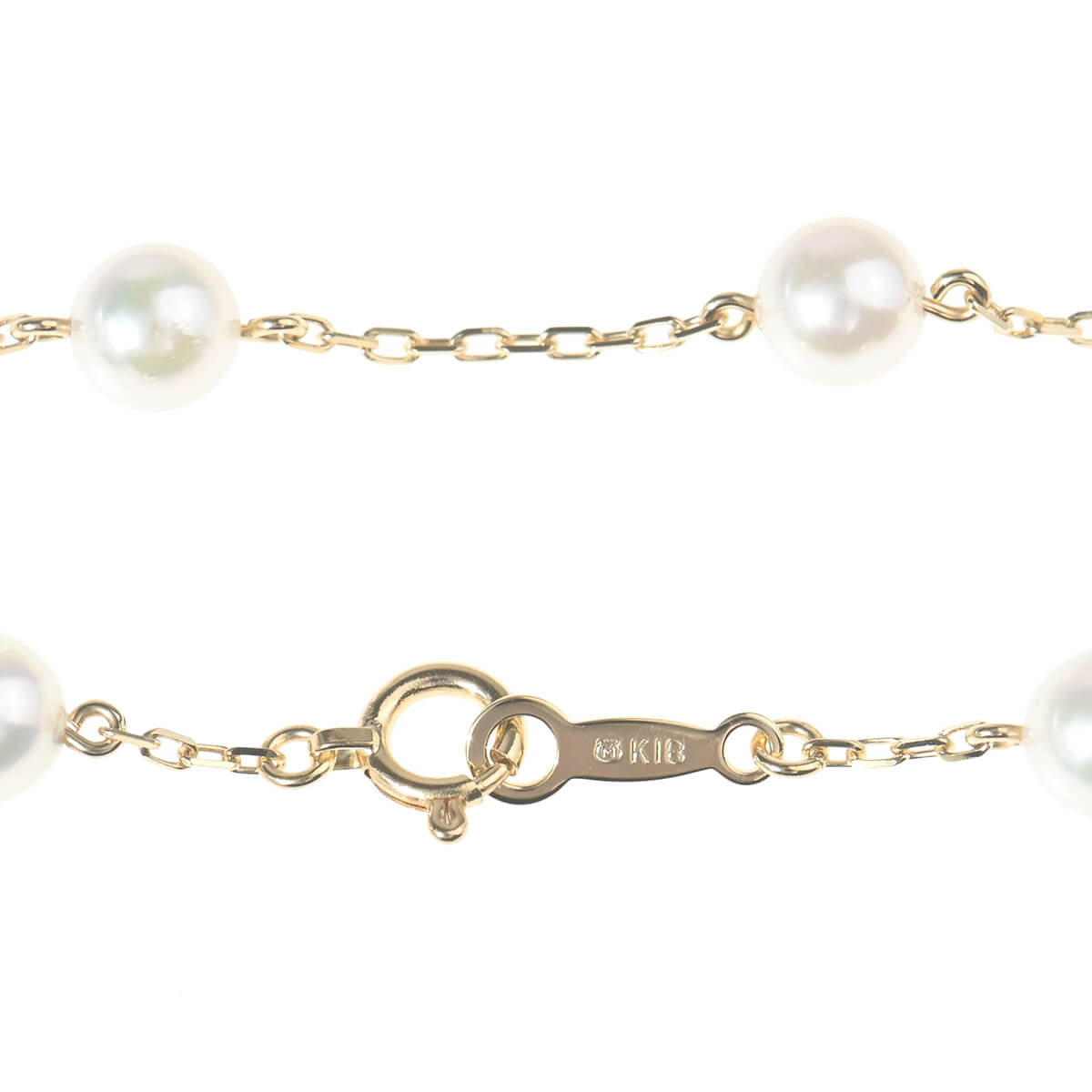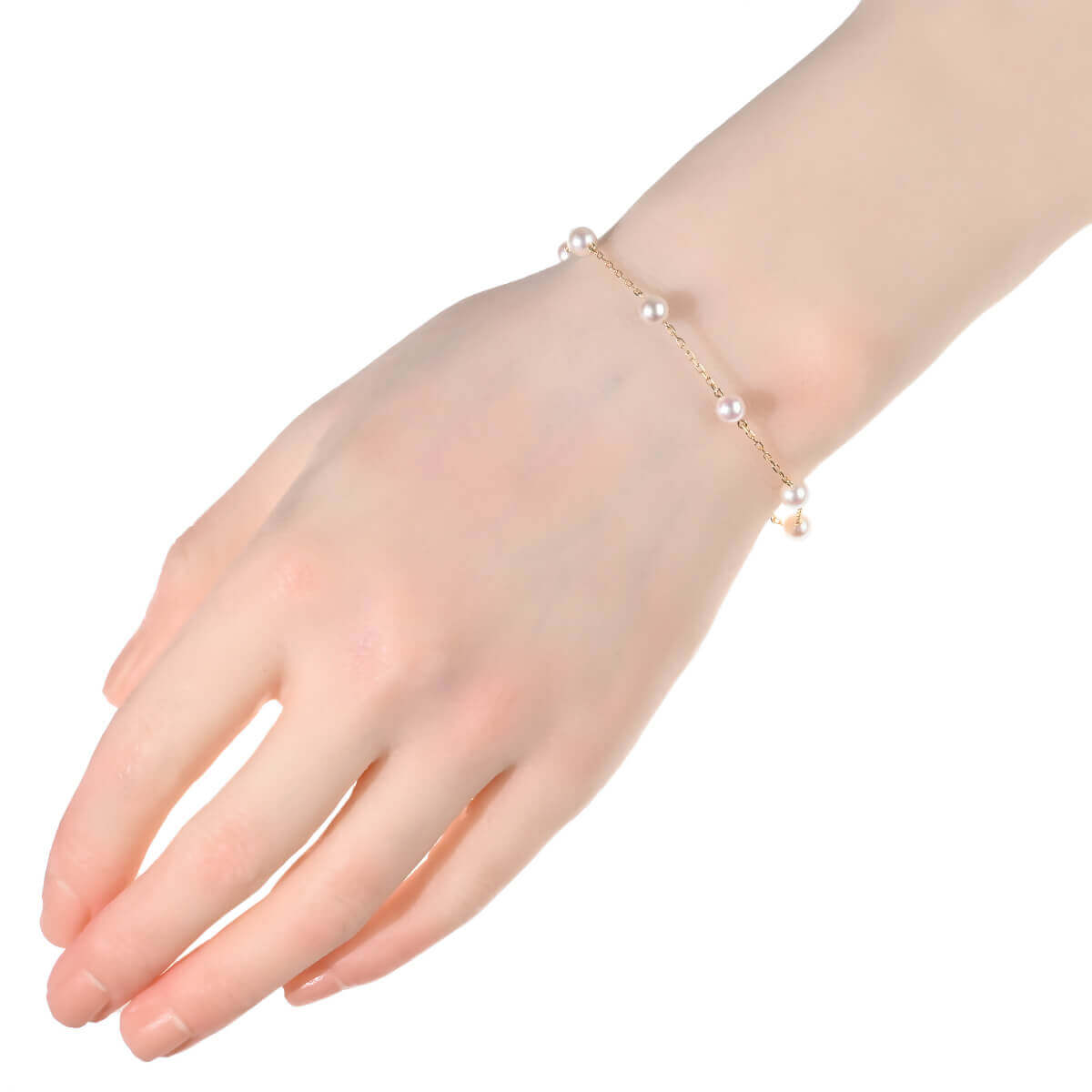 1893年に世界で初めて真珠の養殖に成功し、真珠に生涯を捧げ、「Pearl King(真珠王)」とまで呼ばれ歴史にその名を刻んだ「御木本幸吉」が、“世界中の女性を真珠で飾りたい”と夢を抱いて創業した『MIKIMOTO(ミキモト)』。以来、養殖真珠のオリジネーターとして120年以上も真珠の魅力と向き合い、“真珠と言えばMIKIMOTO”と言われるほどに誰もが知る、日本を代表する世界のジュエラーとなりました。小さいながらも優しく柔らかな光を放つ8粒の愛らしいパールが繊細なチェーンにステーションセッティングされた、イエローゴールド製ブレスレットです。動くたびリズミカルにパールが揺れるブレスレットは、手元を可憐に、華やかに印象づけます。