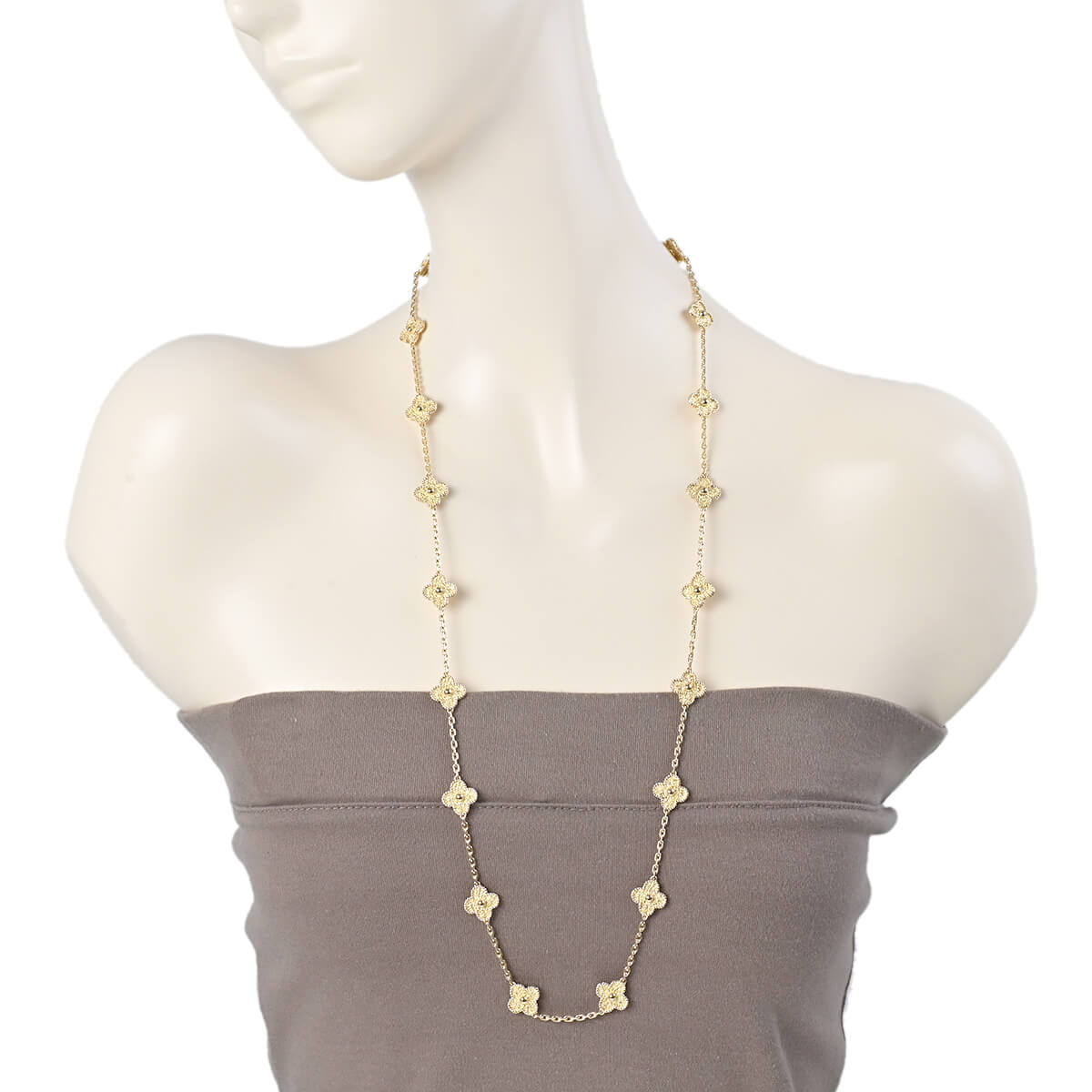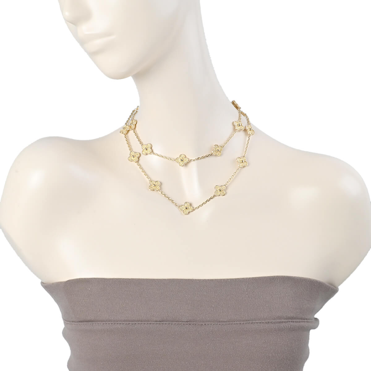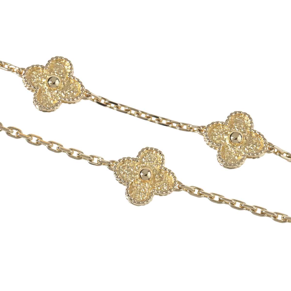 1968年に初めて誕生した幸運のシンボル「アルハンブラ」の特徴を受け継ぎ、『VanCleef&Arpels(ヴァンクリーフ&アーペル)』ならではの独創性と時を超えるエレガンスを湛える「ヴィンテージアルハンブラ」コレクション。ひとつひとつに職人の手作業で異なる仕上げが施され、可憐なゴールドビーズに縁取られた喜びに満ちた幸運のモチーフが20ピース連なる「ヴィンテージアルハンブラ」のイエローゴールド製ネックレスです。たくさんつけてもしつこくなく、むしろ“素敵”にまとまる、不思議な個性をもつアルハンブラはコレクションで揃えていって、バリエーションを魅せるのも。ひとめでそれとわかるラッキーチャームを、どのタイミングで、どのカラーで迎えるかを考えるのも楽しい、エレガントに映えるハッピーな魅力にあふれたコレクションジュエリーです。