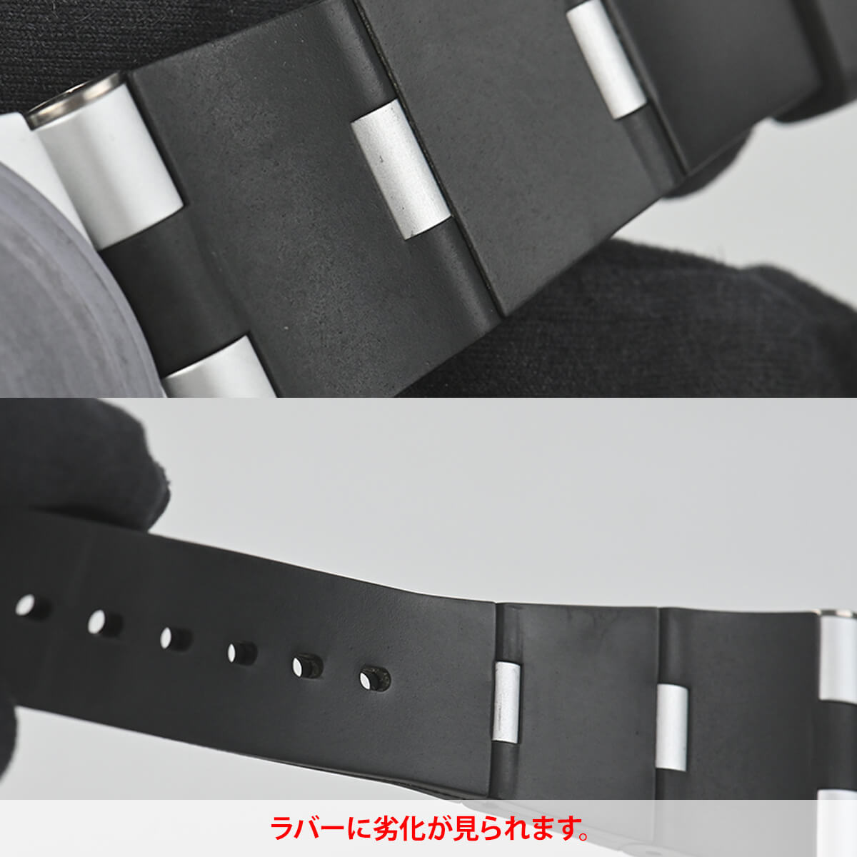 ケースに打痕や傷、ラバーに劣化が見られます。