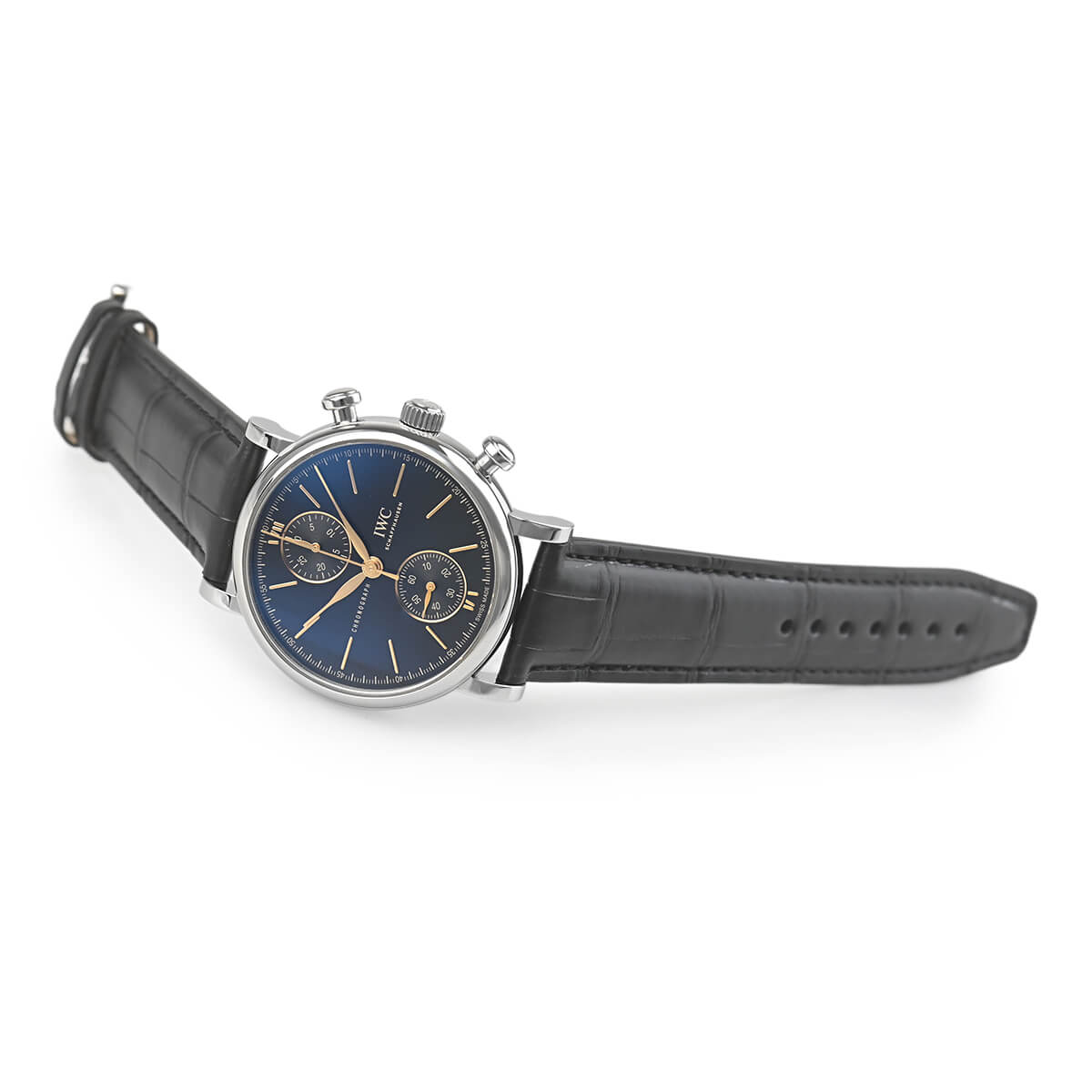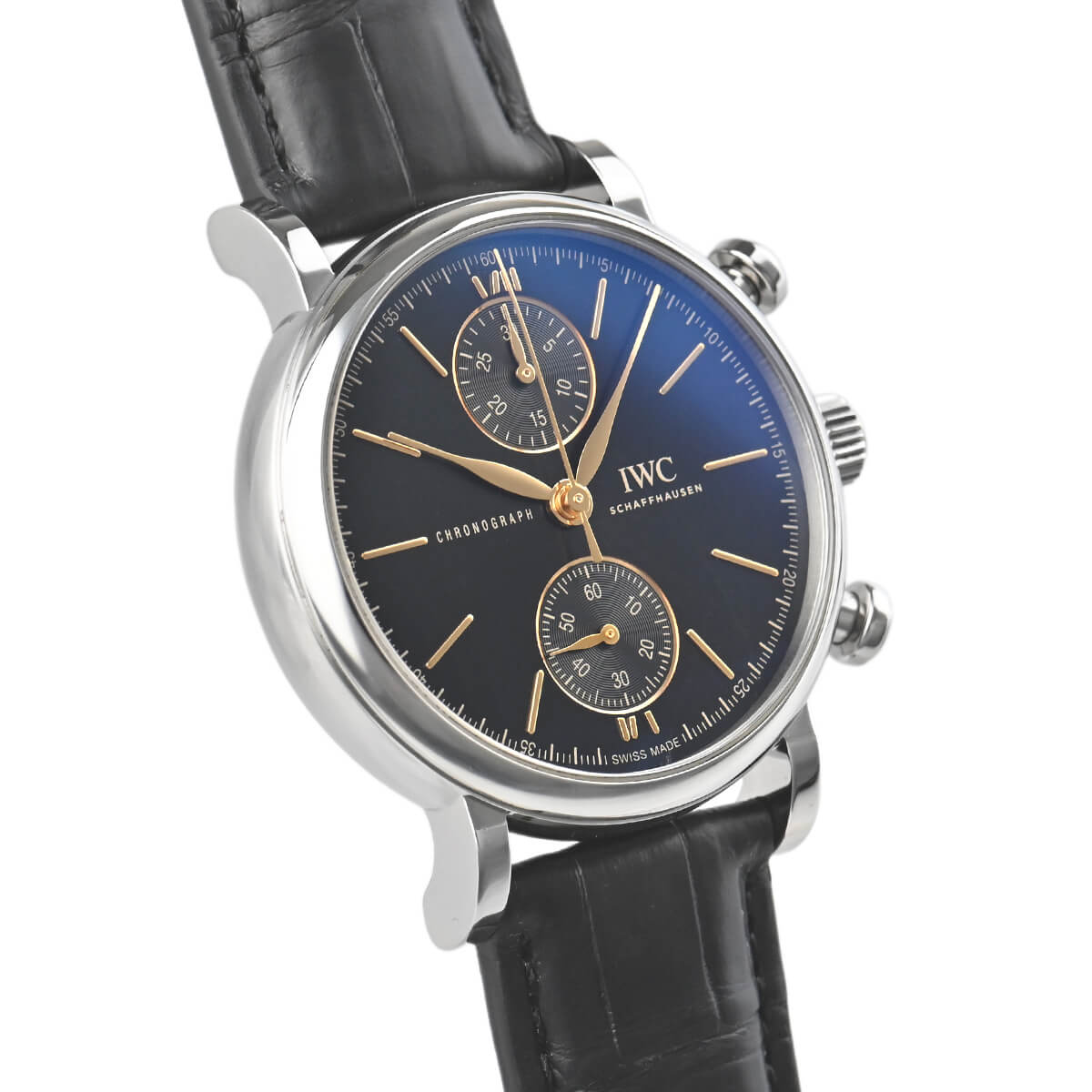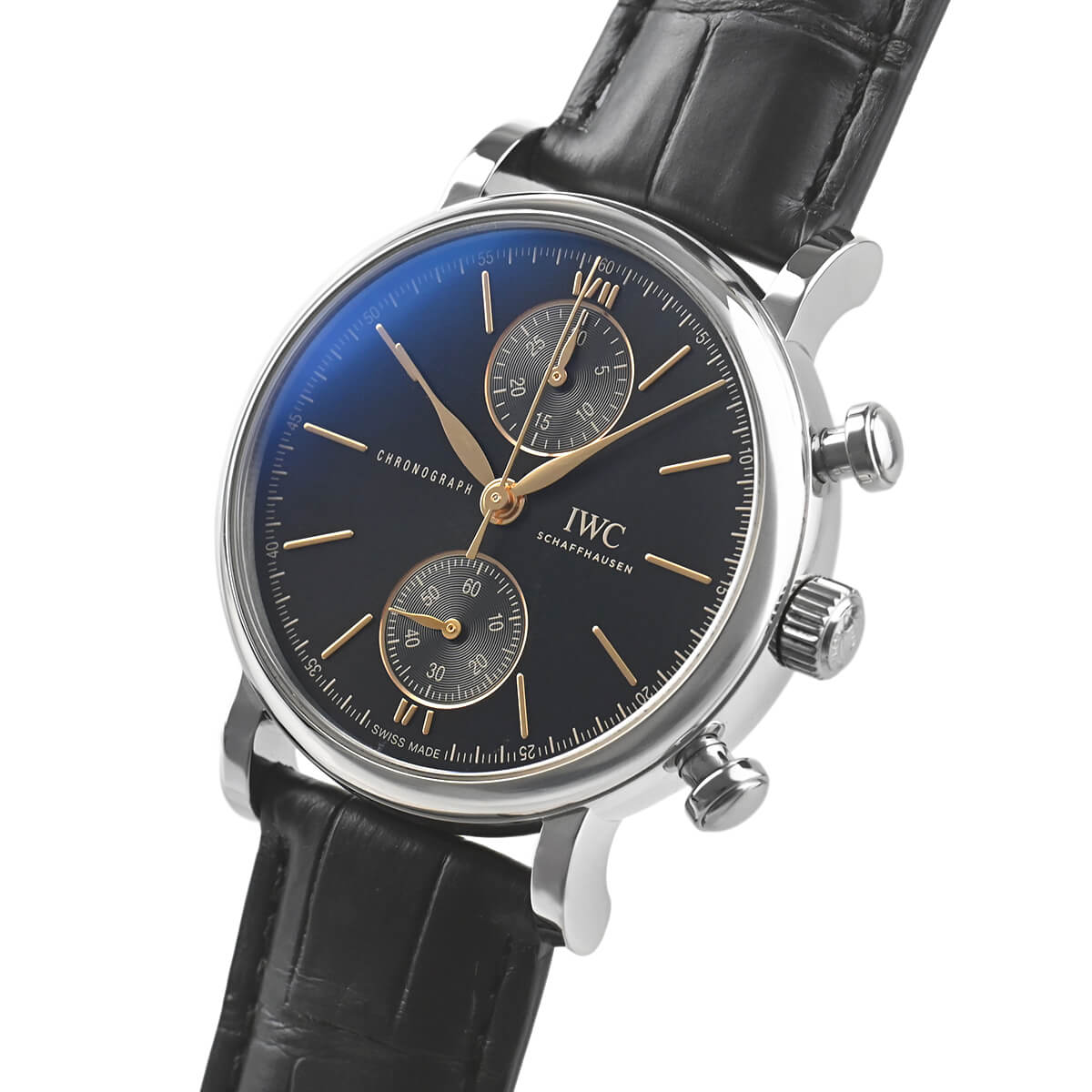 1960年代のデザインを踏襲した、エレガントでクラシックなクロノグラフ【ポートフィノ・クロノグラフ】。ケース径39mmのステンレスケースには、44時間パワーリザーブの自動巻きキャリバー79350を搭載します。