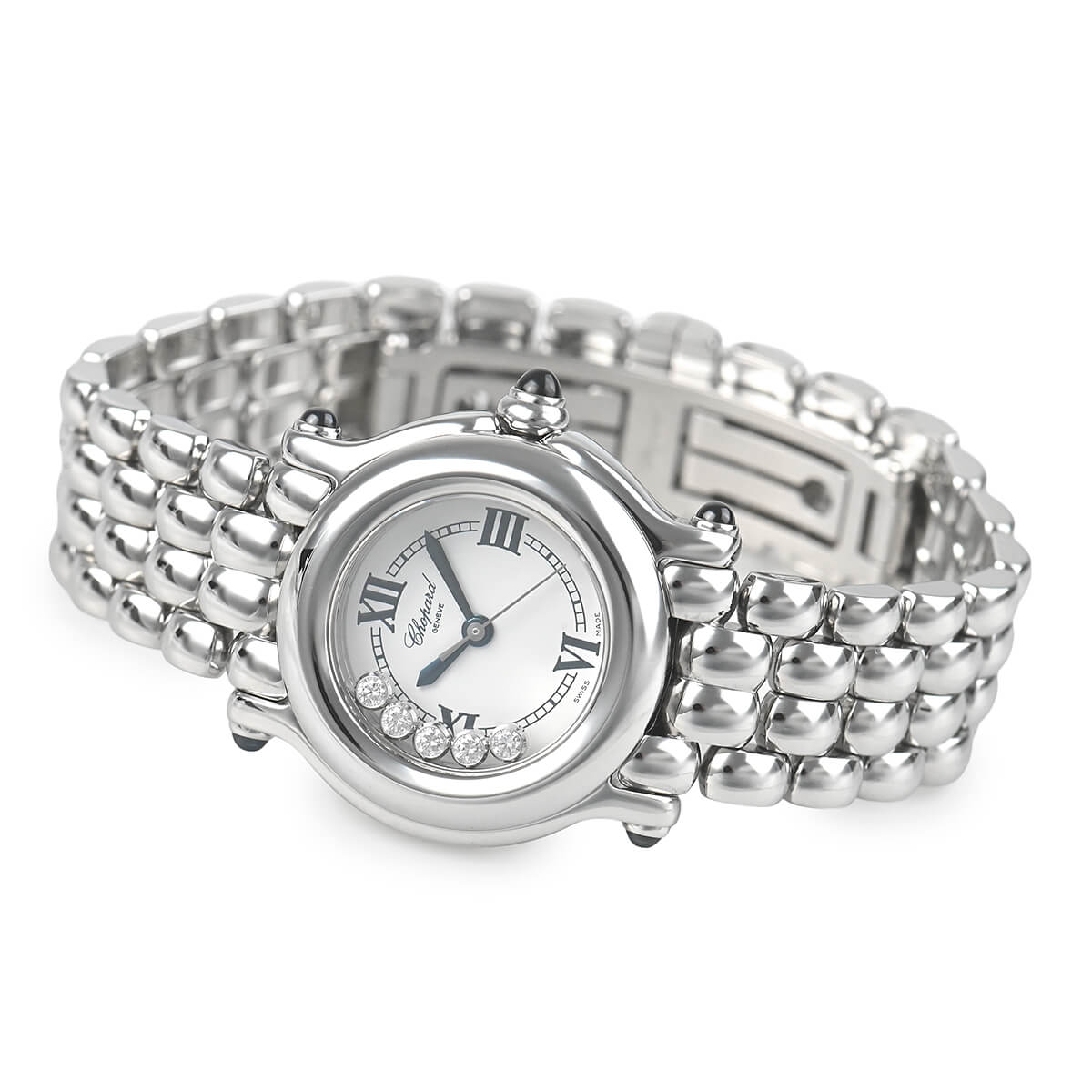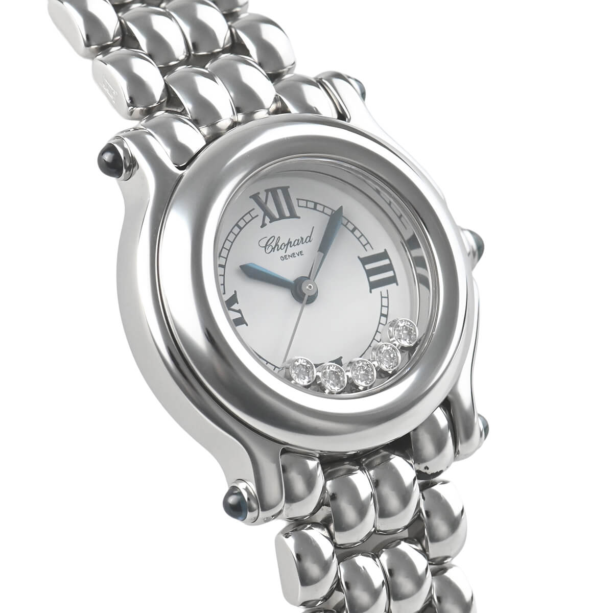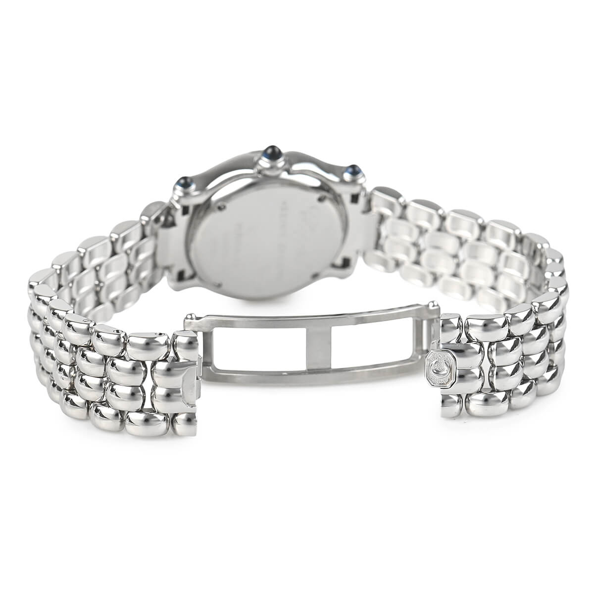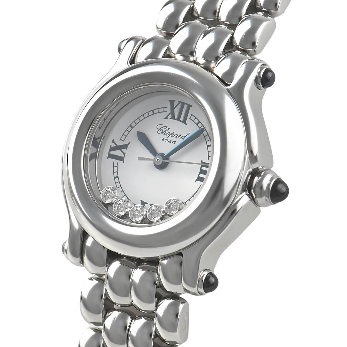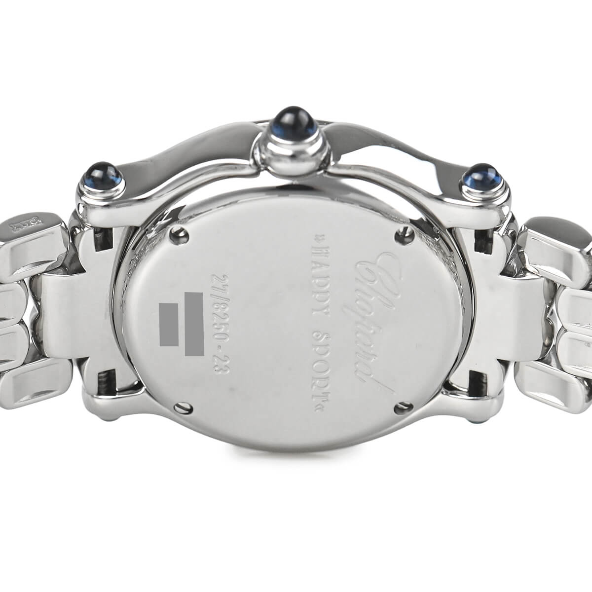 ショパールを代表する個性派ウォッチ「ハッピースポーツ」が入荷しました。ハッピースポーツは、カボションの石とダイヤルの組み合わせに様々な種類があります。今回入荷したのはサファイアカボションにホワイトダイヤル。ダイヤモンドはスタンダードな5ポイントダイヤです。