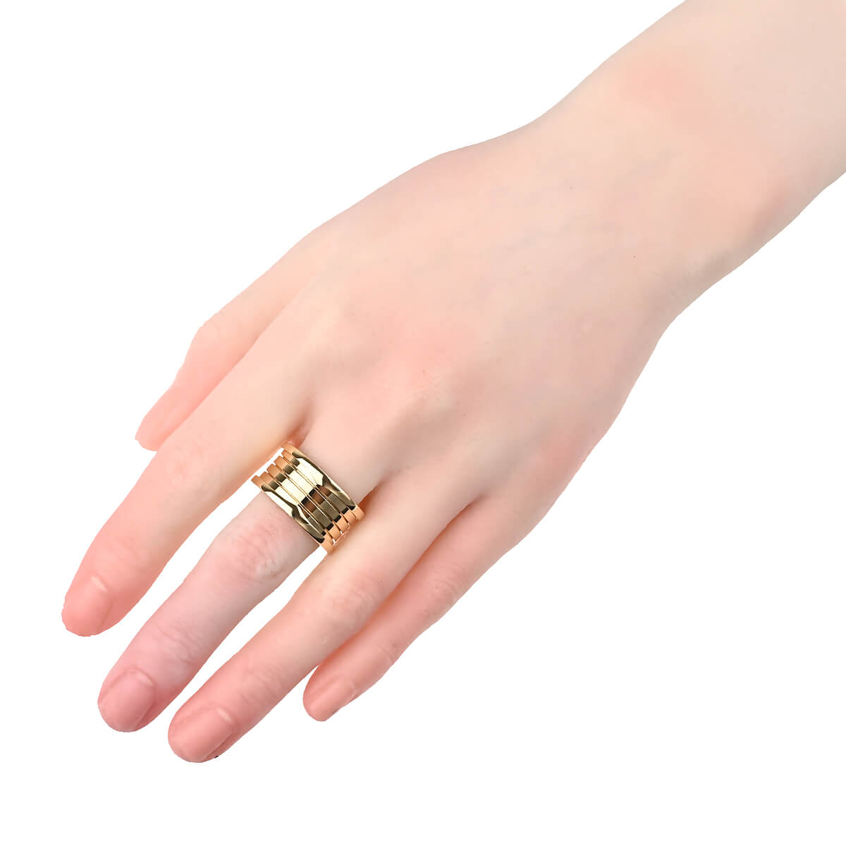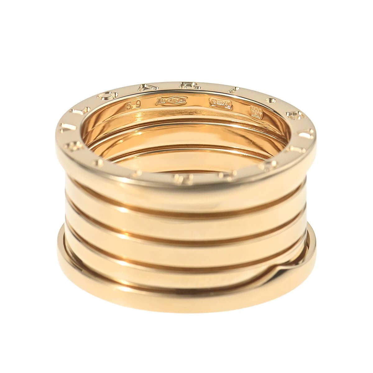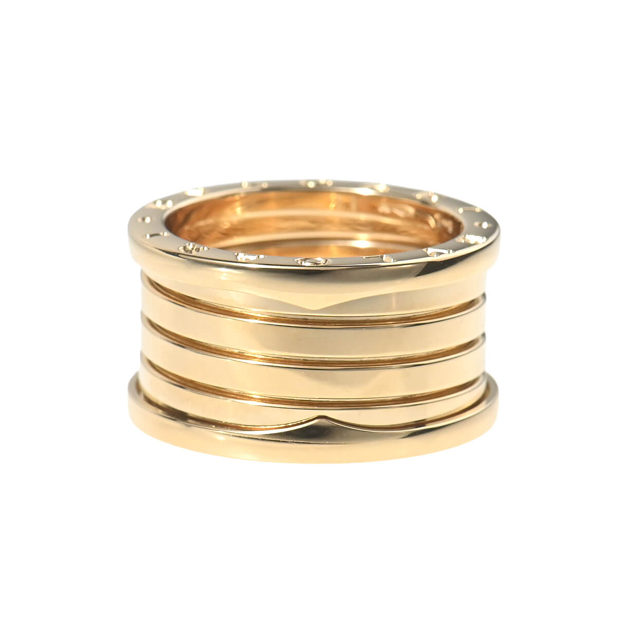世界でもっとも有名な円形競技場コロッセオからインスピレーションを得てデザインされている『BVLGARI(ブルガリ)』「B-ZERO1」コレクションは、創造的なブルガリの世界観を真に表現し、“永遠の都”ローマの壮大さに映し出された、過去、現在、そして未来の調和を表すシンボルなんだとか。創造的なブルガリの世界観をまったく新しい方法で表現する、ゴールドの螺旋が描く流麗な曲線とそのボリュームがもたらすフォルムに、堂々たるアイデンティティを感じる4バンドリング。イタリアンデザインの真の象徴でもあり、シンプルでありながら大胆で特徴的なスパイラルが、ジュエリーアイコンのカリスマ的精神を表現しています。円形に描かれたロゴデザインと同心円の流麗なラインが、指先で気品を漂わせて光彩を放つリングです。