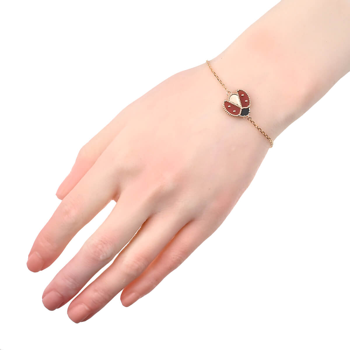 『VanCleef&Arpels(ヴァンクリーフ&アーペル)』にとってかけがけのない再生の季節、春に捧げられたコレクション、てんとう虫と花のモチーフが楽しげに連なる「ラッキー スプリング」。メゾンが愛する2つのテーマである“自然”と“幸運”を結びつけ、メゾンの詩的でポジティブな世界観を形にしたヴァンクリーフらしいコレクションです。慈愛あふれるメゾンの世界をさらに豊かにしてくれる、ローズゴールド製「オープンウィング レディバグ」ブレスレット。カーネリアンとオニキスで表現された愛らしいてんとう虫を、繊細でフェミニンなビーズが囲みます。ヴァンクリーフらしい魅力にあふれたレディバグが手首に寄り添って、身に着けるひとを可憐で洗練された個性で印象づけます。
