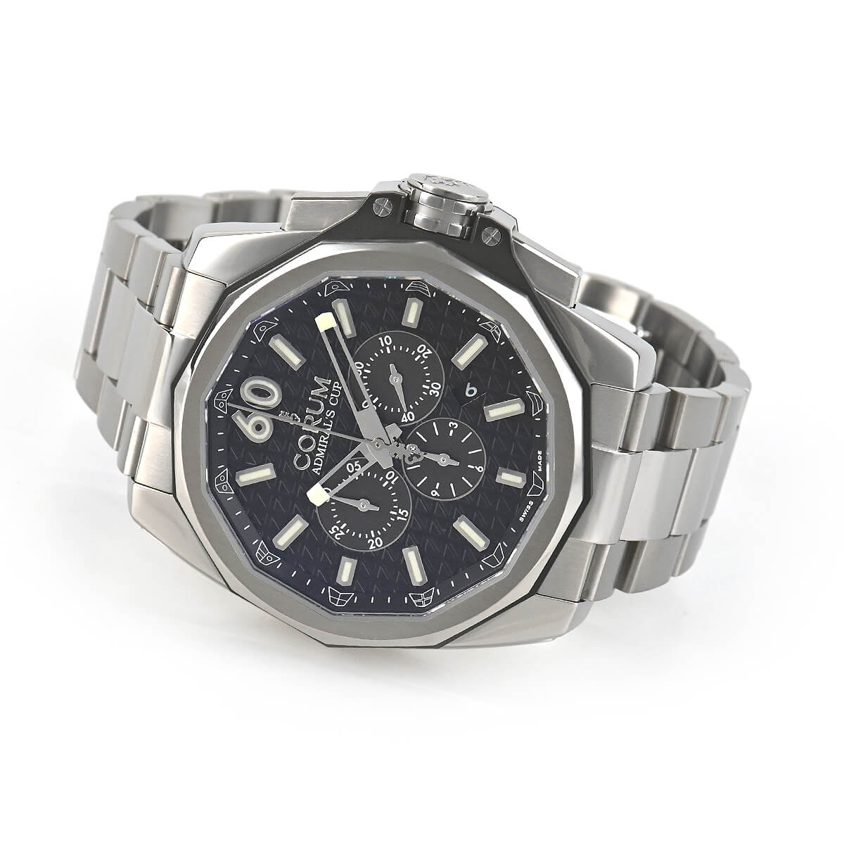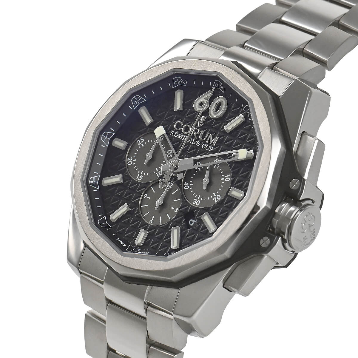 こちらの「アドミラルズカップAC−ONE」は、アドミラルズカップのデザイン的な特徴でもある12角形ケースはそのままに、チタンケースを採用したクロノグラフ。