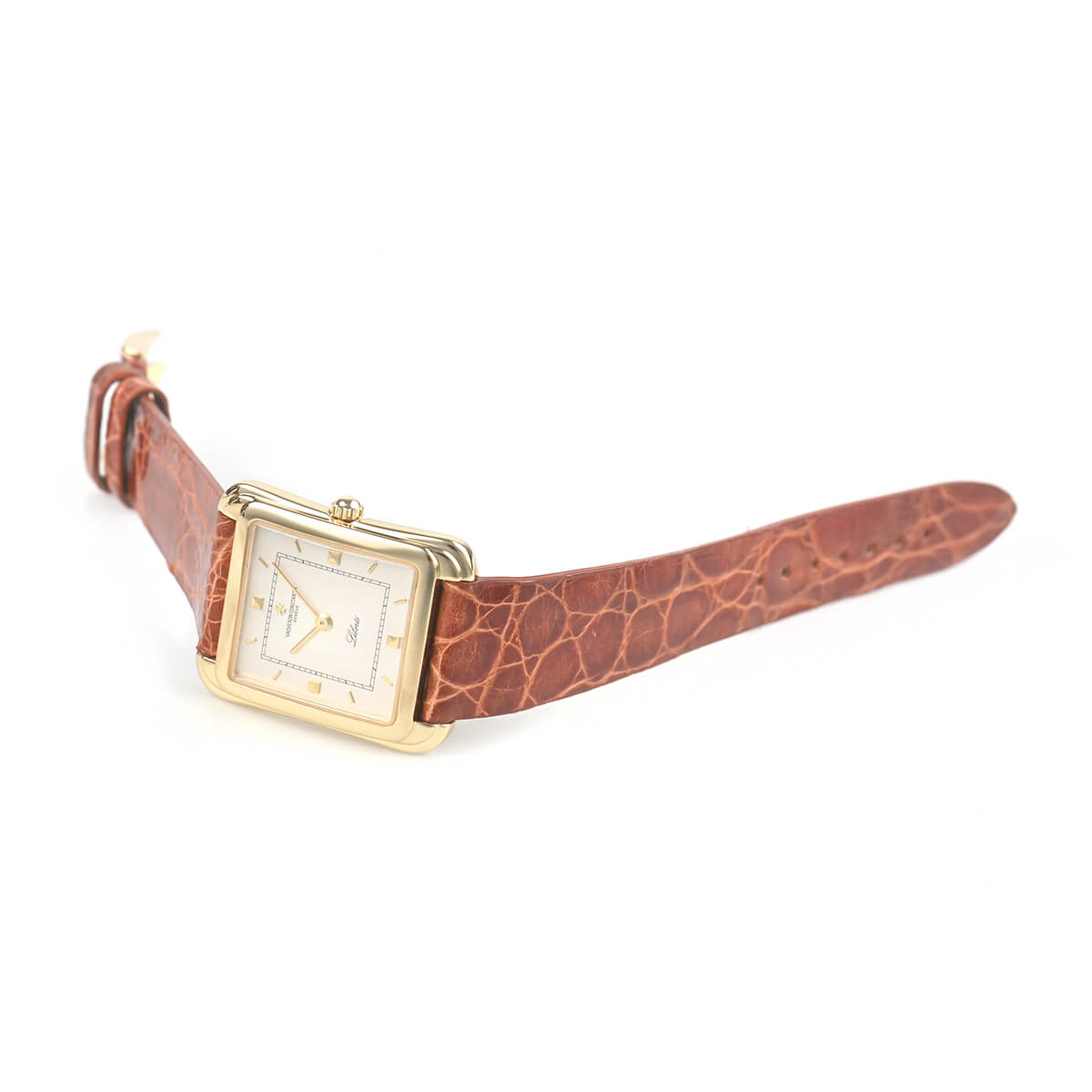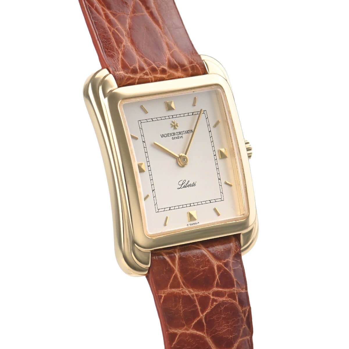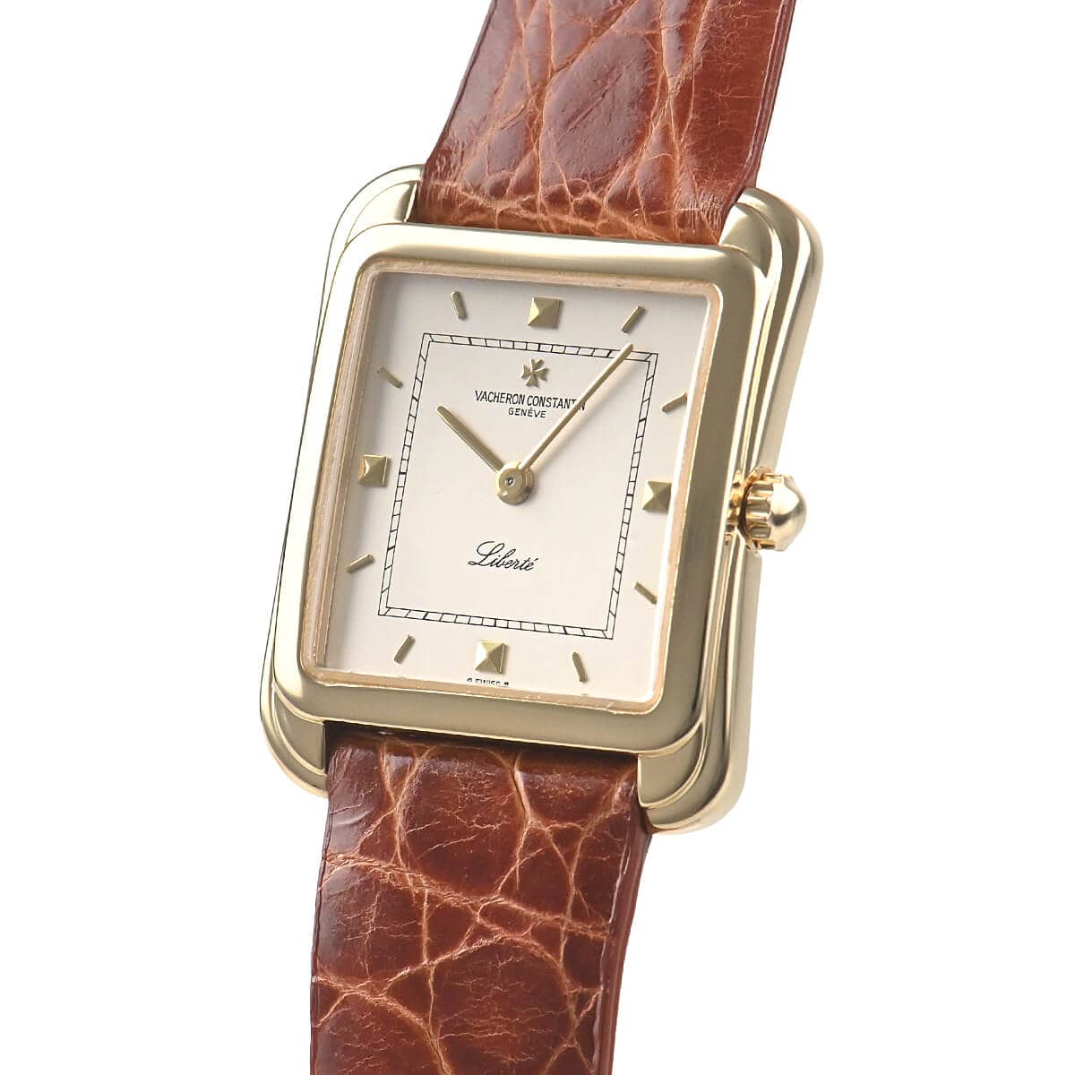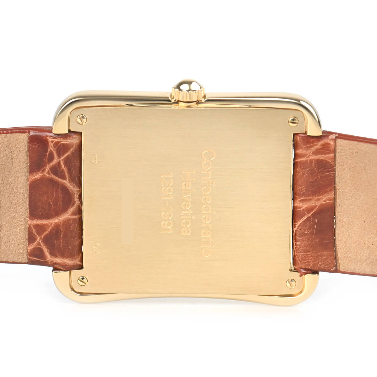 ヴァシュロンのレキュタンギュラーモデル「リベルテ」。こちらはスイス建国700周年を祝し、1991年に作られた記念モデルで、裏蓋の「Confoederatio Helvetica 1291-1991」の刻印は、ラテン語でスイス国内での自国の正式名称を表す「ヘルベチア連邦」とその建国年の意味です。