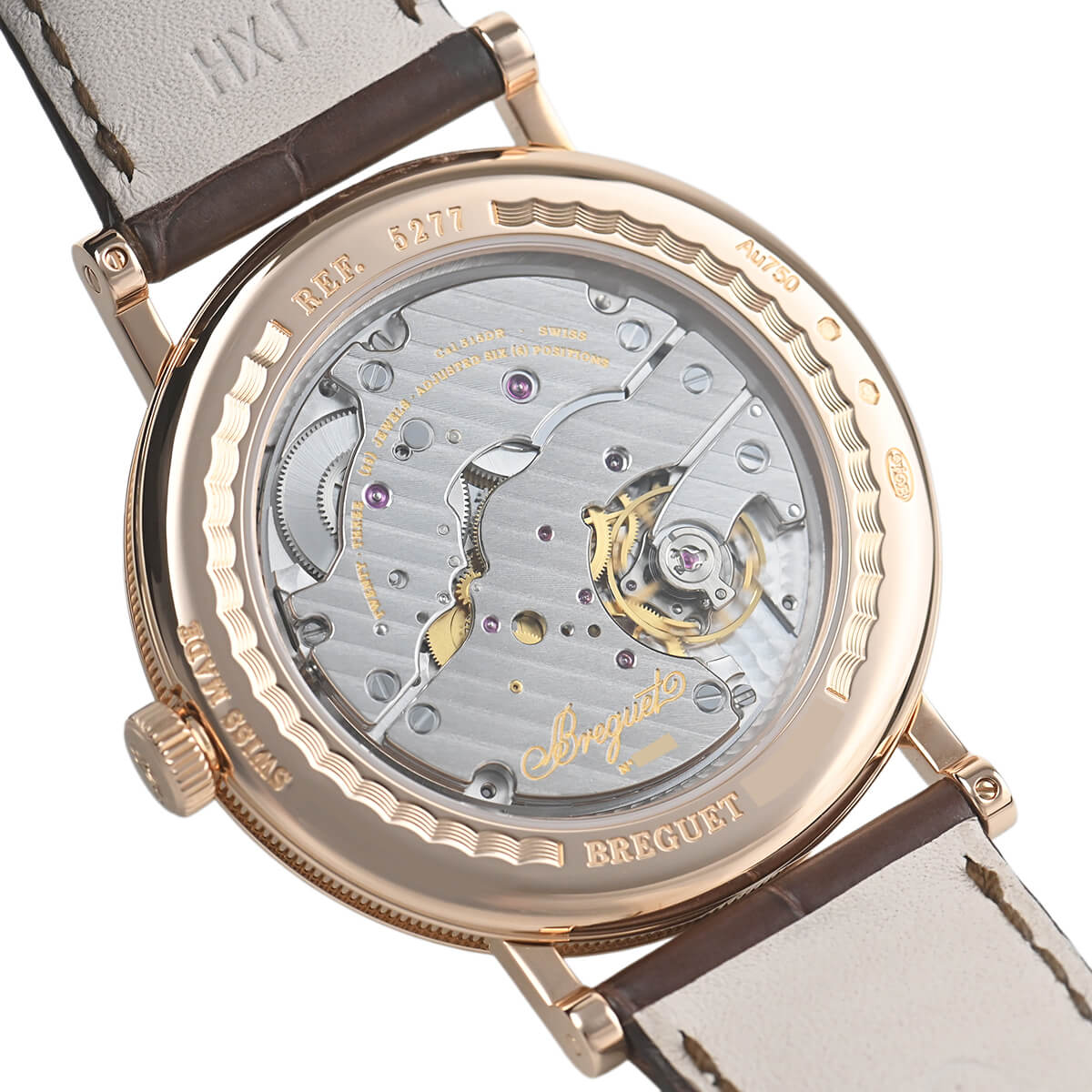 これまでと同じサイズの香箱とケース径を与えられながら、96時間というロングリザーブに改良された「5277」。採用されたシリコン製ヒゲゼンマイは、有害物質を含まない上に磁気帯びをせず、また錆びにくいという特性を持っています。