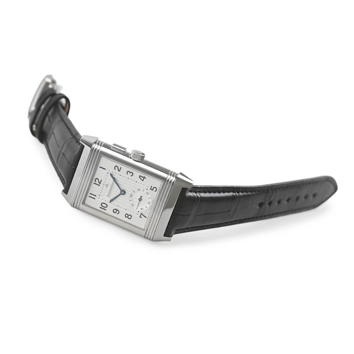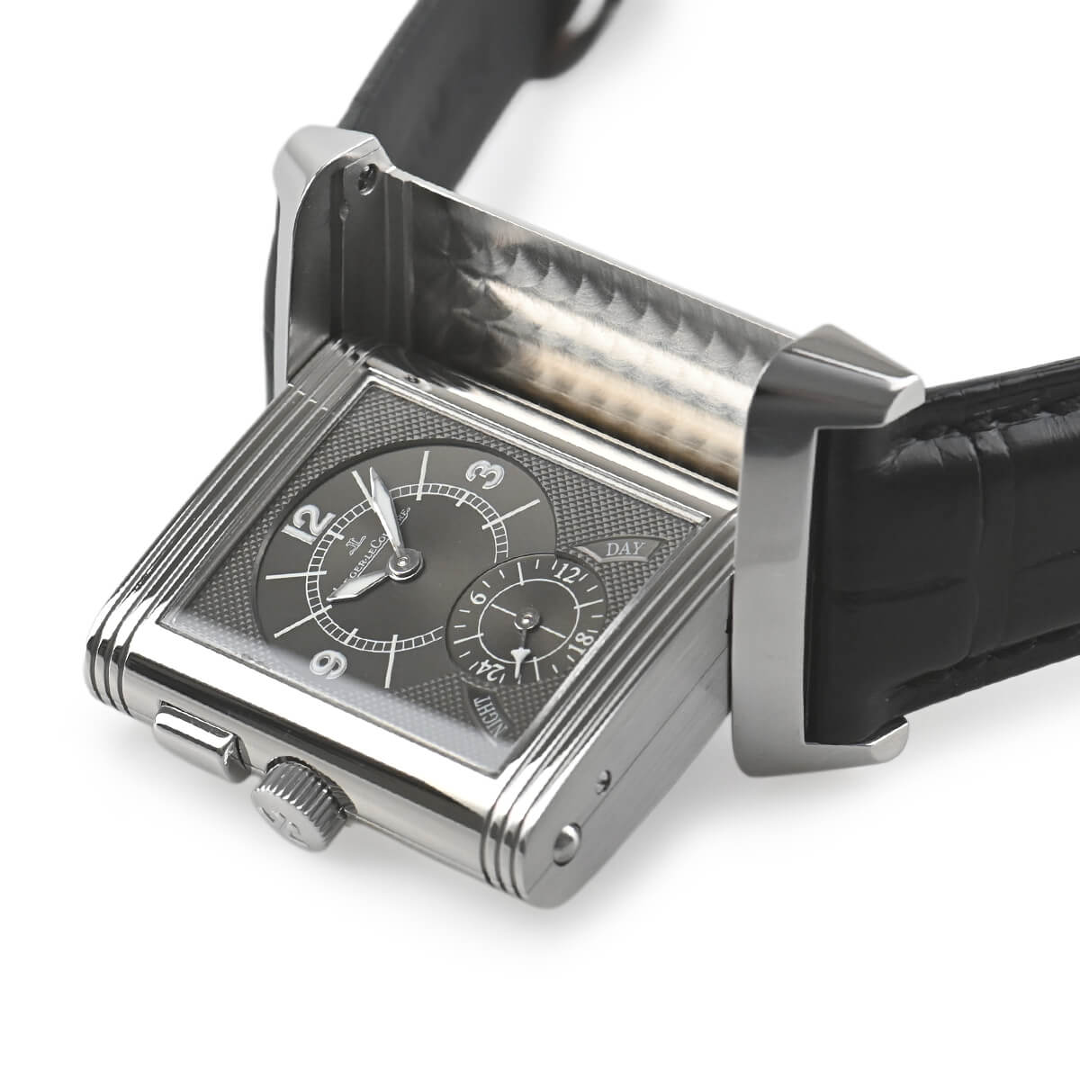 反転するレベルソのケースを活かして両面を時計にし、2つの時間帯の表示を可能にした「レベルソデュオ」。通常のGMTモデルでは、専用の針で第2時間帯を表示しますが、ケースを反転するだけで確認出来るこのモデルの使い勝手はかなりのものです。