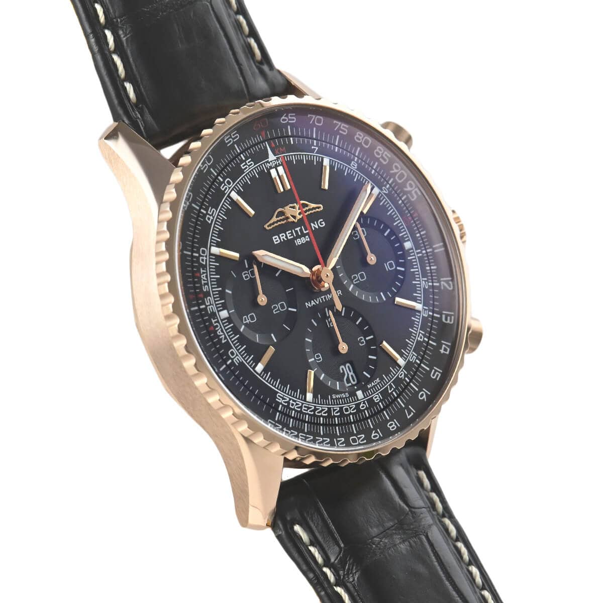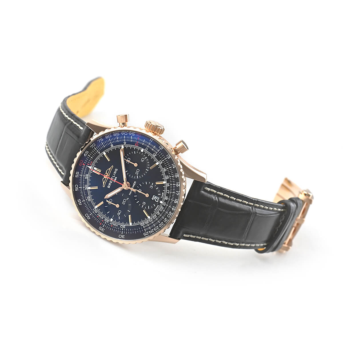 ブライトリングの看板モデル「ナビタイマー」に自社製クロノグラフムーブメントのB01を搭載した【ナビタイマー B01 クロノグラフ41】が入荷しました。こちらは日本限定モデルでレッドゴールド仕様。