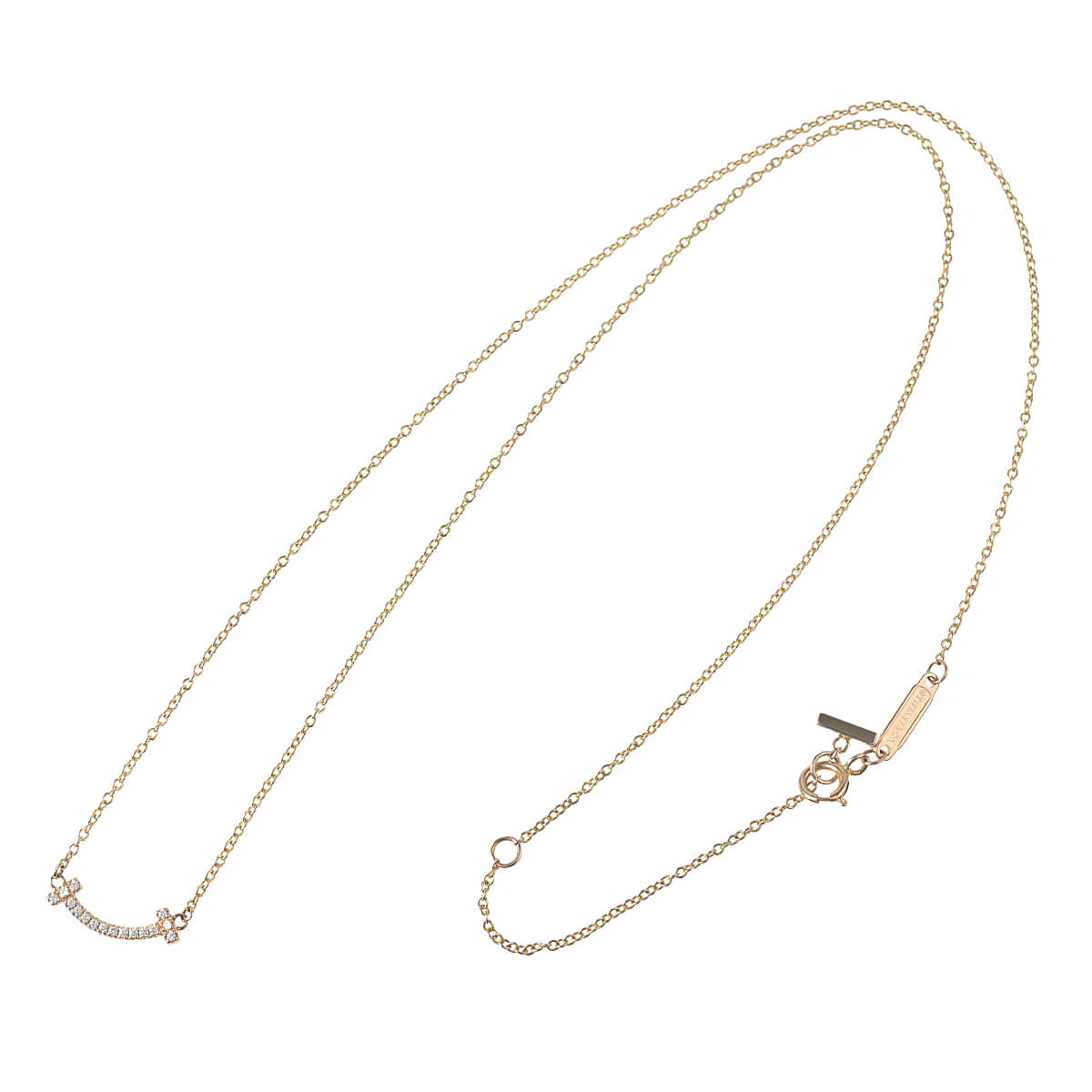 グラフィックなアングルとすっきりとクリーンなラインが溶けあって、美しい個性となっている『TIFFANY&Co.(ティファニー)』「T」。「Tスマイル」は世界で最も普遍的な幸せの象徴である笑顔と、そのジェスチャーがもたらす繋がりを表現しているコレクションです。まばゆいばかりの煌めきを放つティファニーダイヤモンドが描く、フェミニンで可憐な曲線が際立つ、ミニサイズの「Tスマイル」ペンダント。華奢で繊細なミニサイズながらひとめでティファニーとわかるペンダントは、デコルテで一層の存在感を放ちます。身に着けるだけで自然に笑顔がこぼれそうな愛らしいジュエリーは、ギフトにも。まばゆいばかりに煌めくティファニーダイヤモンドが、フェミニンでエレガントな曲線を描く、さりげなくも美しい個性をもったペンダントです。