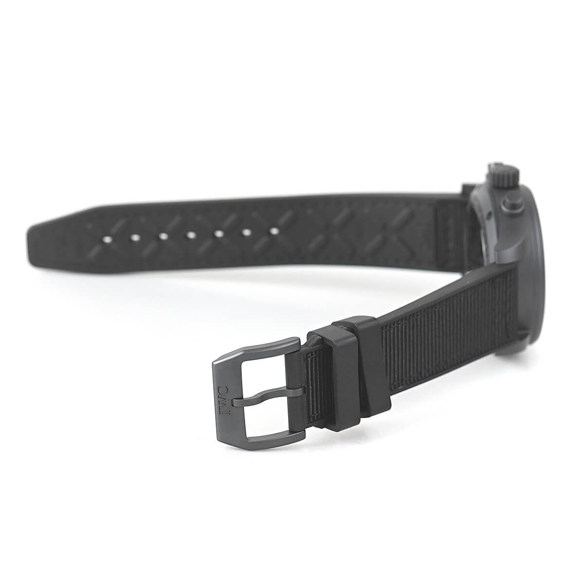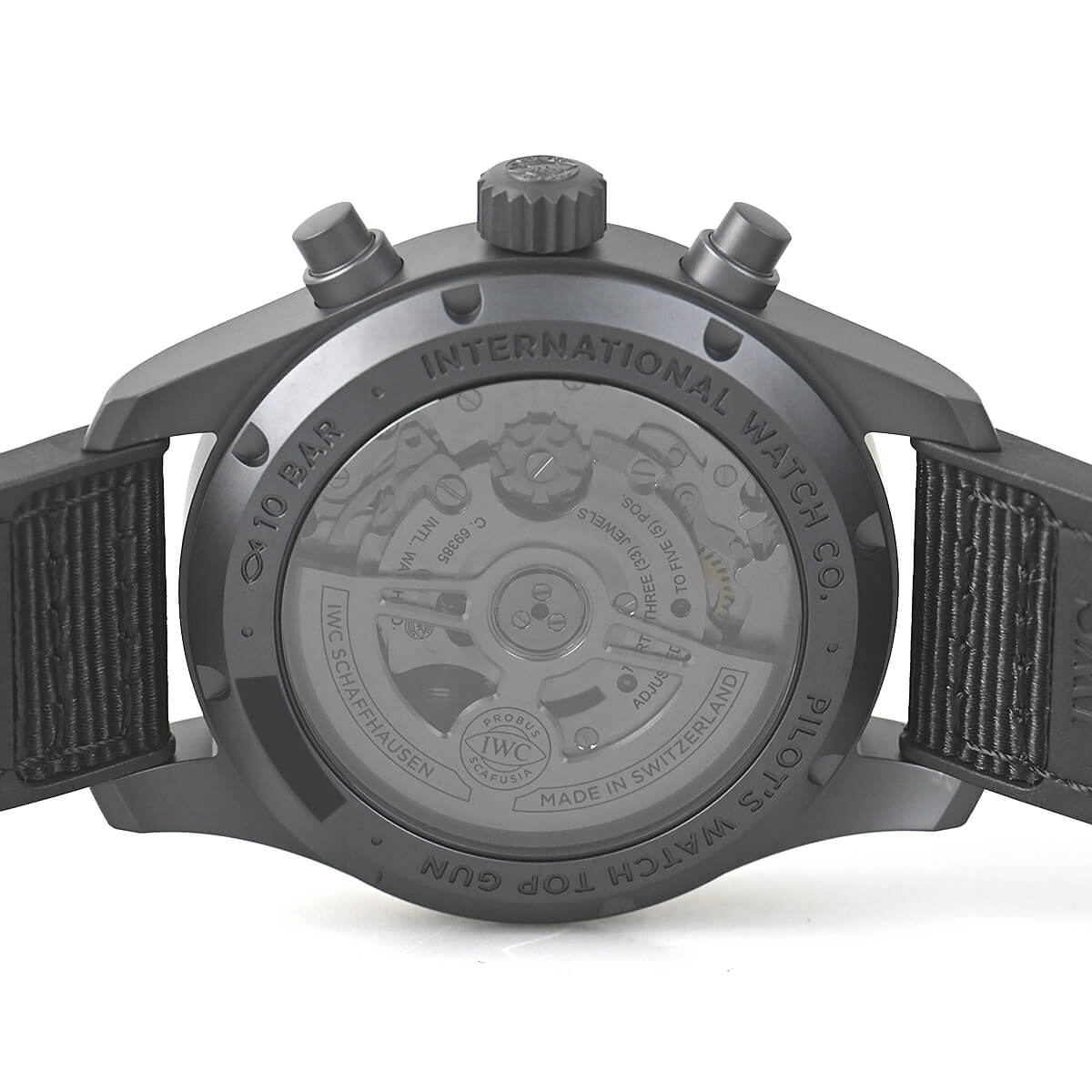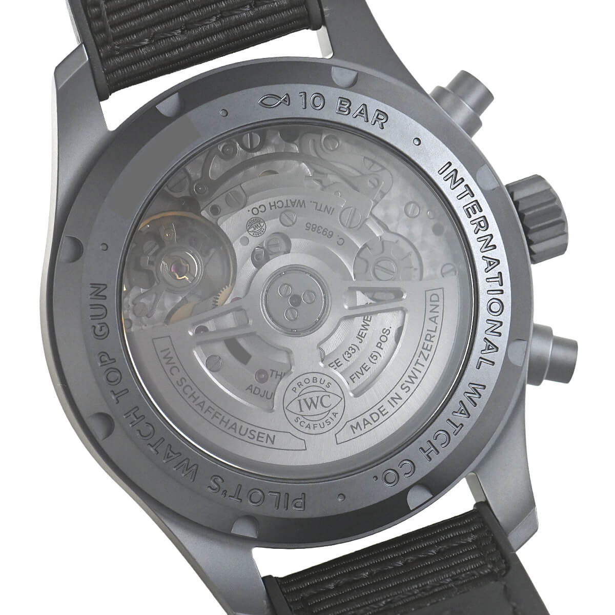 【パイロットウォッチ クロノグラフ41 トップガン セラタニウム】は、ケース、リューズ、プッシュボタンにIWCが自社開発したセラタニウムを使用したモデル。セラタニウムはIWCが5年もの歳月を掛けて開発した新素材となり、チタニウムと同程度の軽さと堅牢性を持ち、更にセラミックと同様の硬度と耐傷性を備えます。