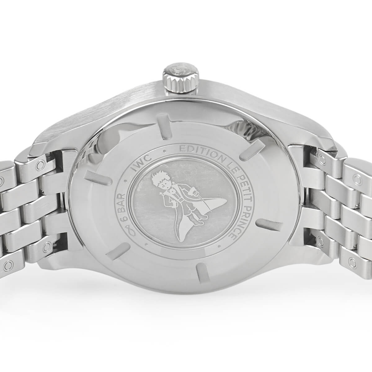 フランス人の飛行士で作家、さらには冒険家でもあったアントワーヌ・ド・サンテグジュペリ。こちらの「パイロットウォッチ マーク18 プティ・プランス」は、サンテグジュペリの代表作の「星の王子さま」のエングレービングを裏蓋に施しています。