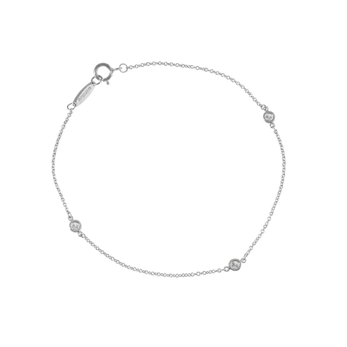 1970年代ファッションミューズとして注目を集めながら、1974年に『TIFFANY&Co.(ティファニー)』のデザイナーに就任して以来、圧倒的な存在感と天性の才能で世界を魅了した、パワフルウーマン“エルサ・ペレッティ”。優美なチェーンとベゼルセッティングのストーンの組み合わせが際立つ、エルサ・ペレッティの不朽の名品「DBY(ダイヤモンド・バイザヤード)」は、ダイヤモンドの身に着け方を永遠に変えた画期的なコレクションとまで言われています。繊細なチェーンと、3粒のベゼルセッティングのティファニーダイヤモンドの組み合わせが際立つブレスレット。円形のマテリアルにセットされたダイヤモンドがどこか有機的で、柔らかな印象を放ち、手元を煌めきで彩ります。
