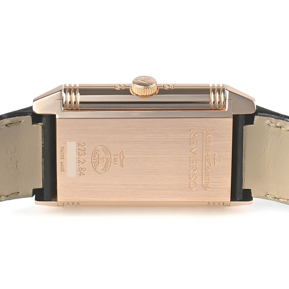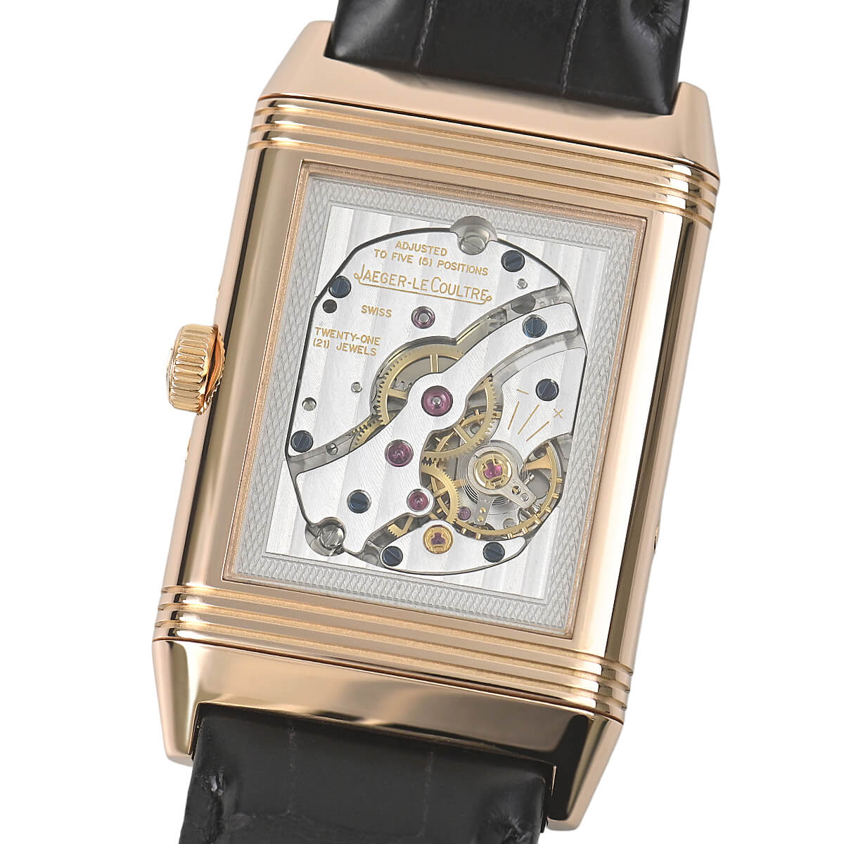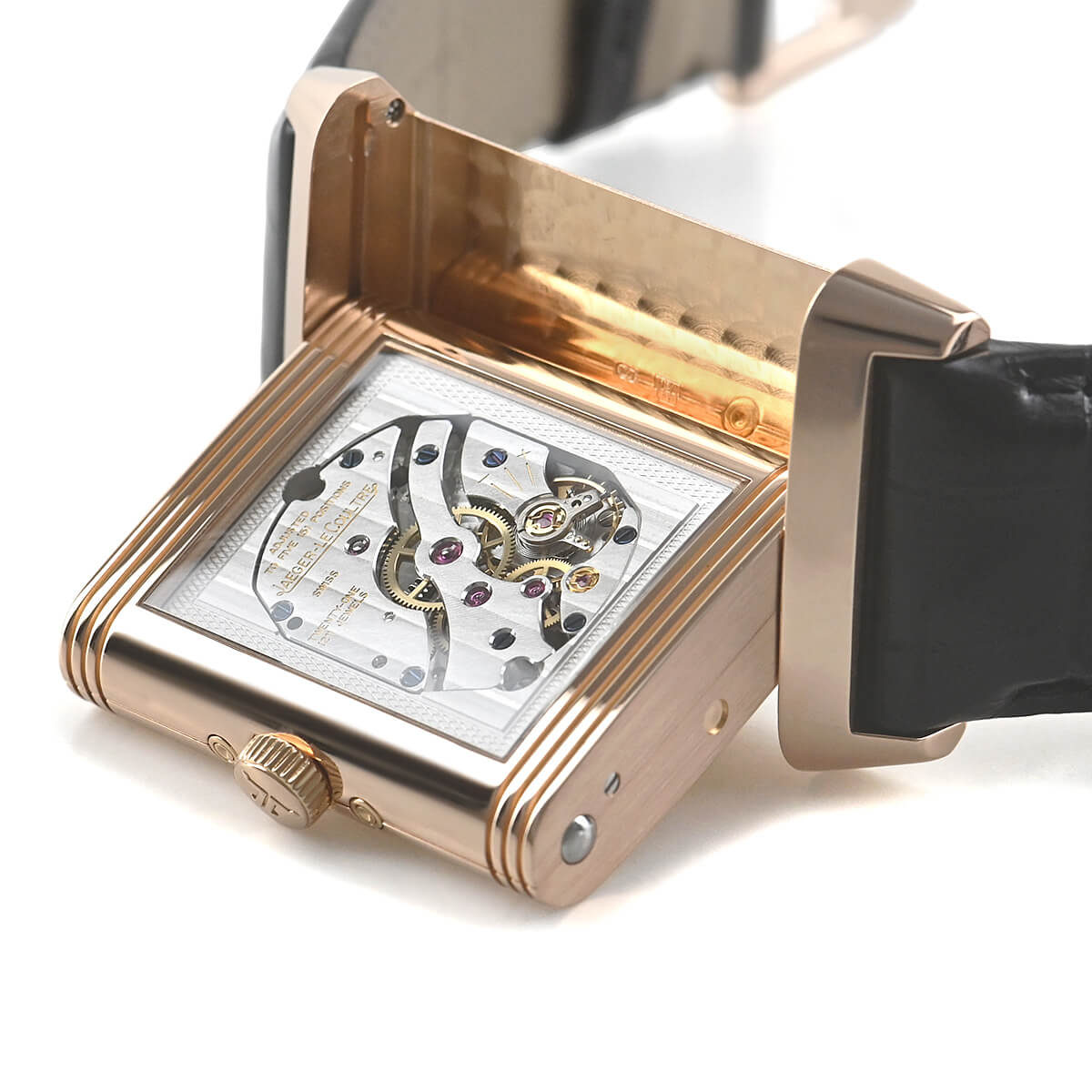 ケースはシースルーバックになっていますので、レベルソらしい角型のムーブメントをお楽しみいただけます。