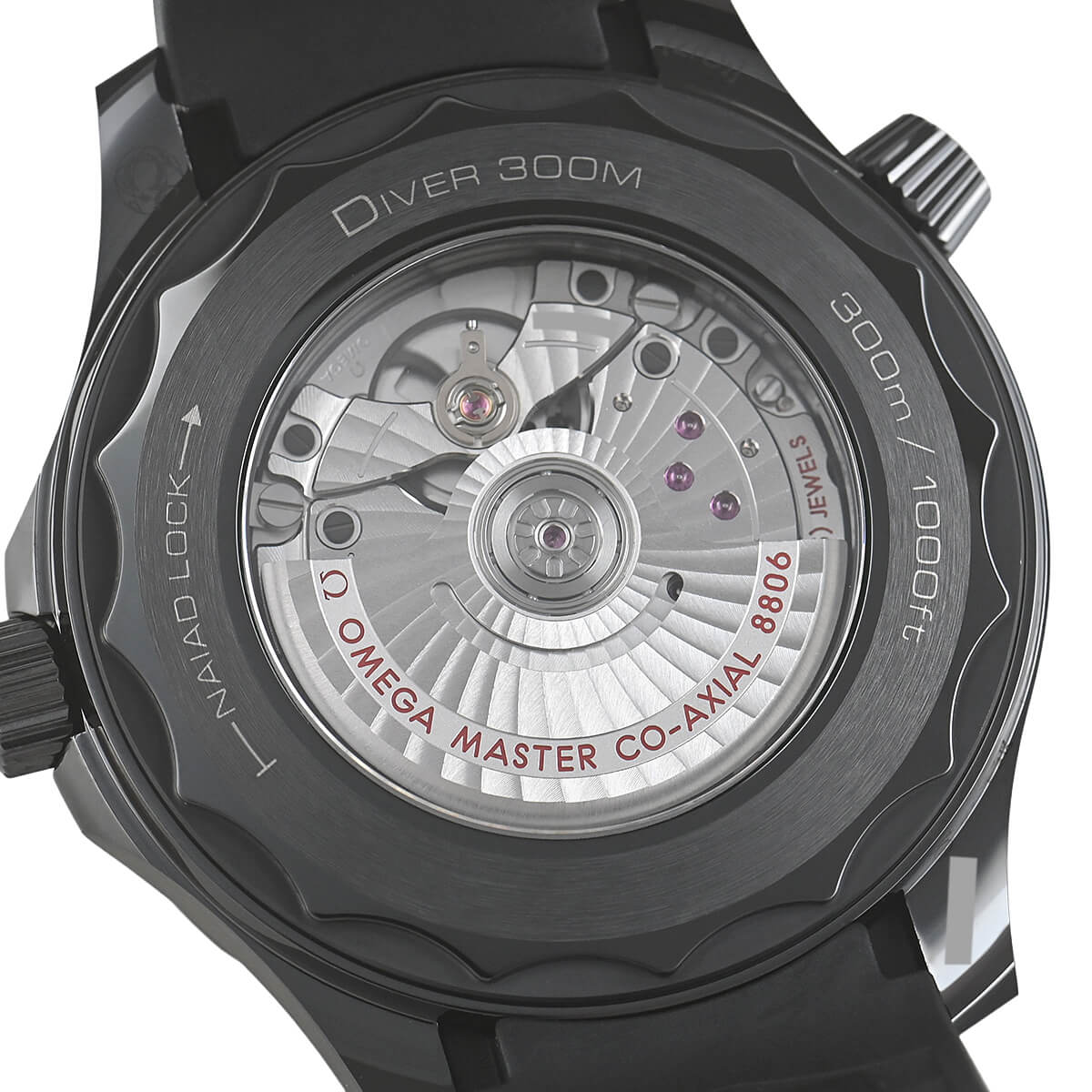 サファイアケースバックから覗くムーブメントには、15,000ガウス以上の耐磁性能を持ち、スイス連邦計量・認定局(METAS)が認定したマスタークロノメーターのキャリバー8806を搭載します。