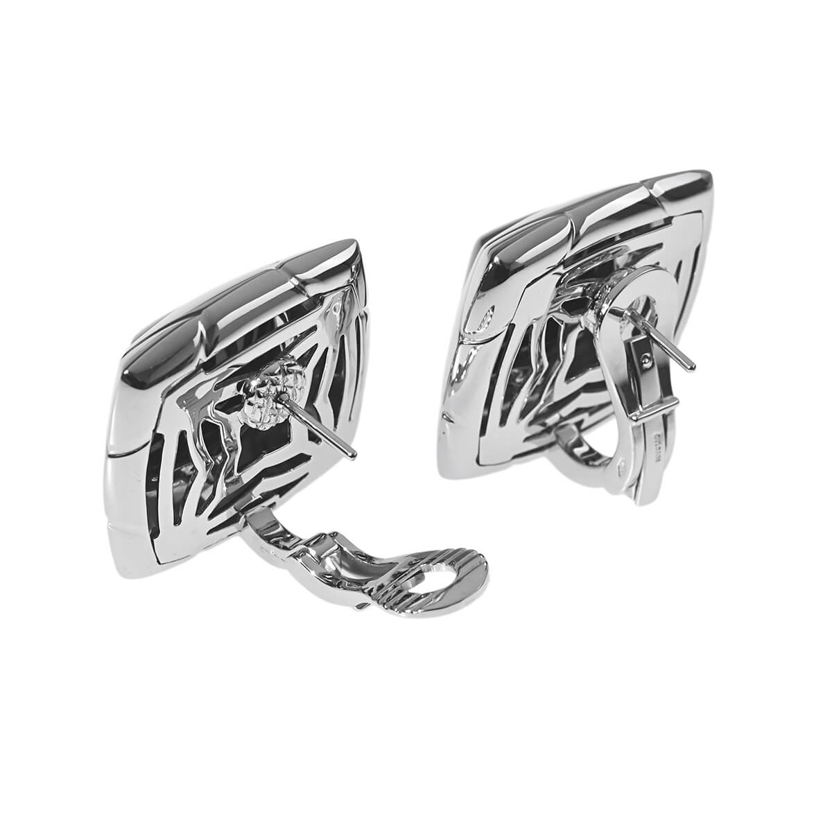 エジプトの砂漠にそびえるピラミッドのように、先端の盛り上がるフォルムが印象的な『BVLGARI(ブルガリ)』「ピラミデ」コレクション。ただ美しいだけでは終わらずどこかにユニークさを取り入れ、自然や歴史に対して常に敬意を忘れない、そんなブルガリという一流ジュエラーの真髄といつの時代も変わらない姿勢をも感じられるコレクションです。艶やかに磨かれたボリュームたっぷりのホワイトゴールドピラミッドのセンターに、漆黒のオニキスがデザインされたホワイトゴールド製ピアス。シンプルながら個性ある美しいフォルムから、ブルガリらしい独特の世界観を感じられるピアスがフェイスラインを印象づけます。