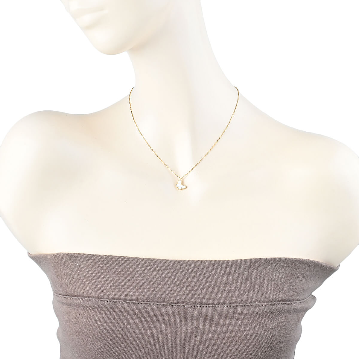 1968年に初めて誕生した幸運のシンボル「アルハンブラ」の特徴を受け継ぎ、『VanCleef&Arpels(ヴァンクリーフ&アーペル)』ならではの独創性と時を超えるエレガンスを湛える「アルハンブラ」コレクション。こちらは定番「ヴィンテージアルハンブラ」の喜びに満ちた幸運のモチーフをミニチュアサイズで表現した、「スウィート アルハンブラ」コレクションです。可憐なビーズに縁取られたマザーオブパールの“パピヨン(蝶々)”が繊細なチェーンにあしらわれた、イエローゴールド製「スウィート アルハンブラ」ペンダント。たくさんつけてもしつこくなく、むしろ“素敵”にまとまる、不思議な個性をもつアルハンブラはコレクションで揃えていって、バリエーションを魅せるのも。柔らかな光沢を放つマザーオブパールの美しさを繊細なゴールドビーズが際立たせている軽やかで可憐な蝶々は、定番クローバーとのコーディネートも素敵です