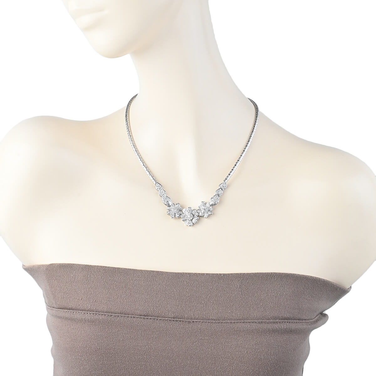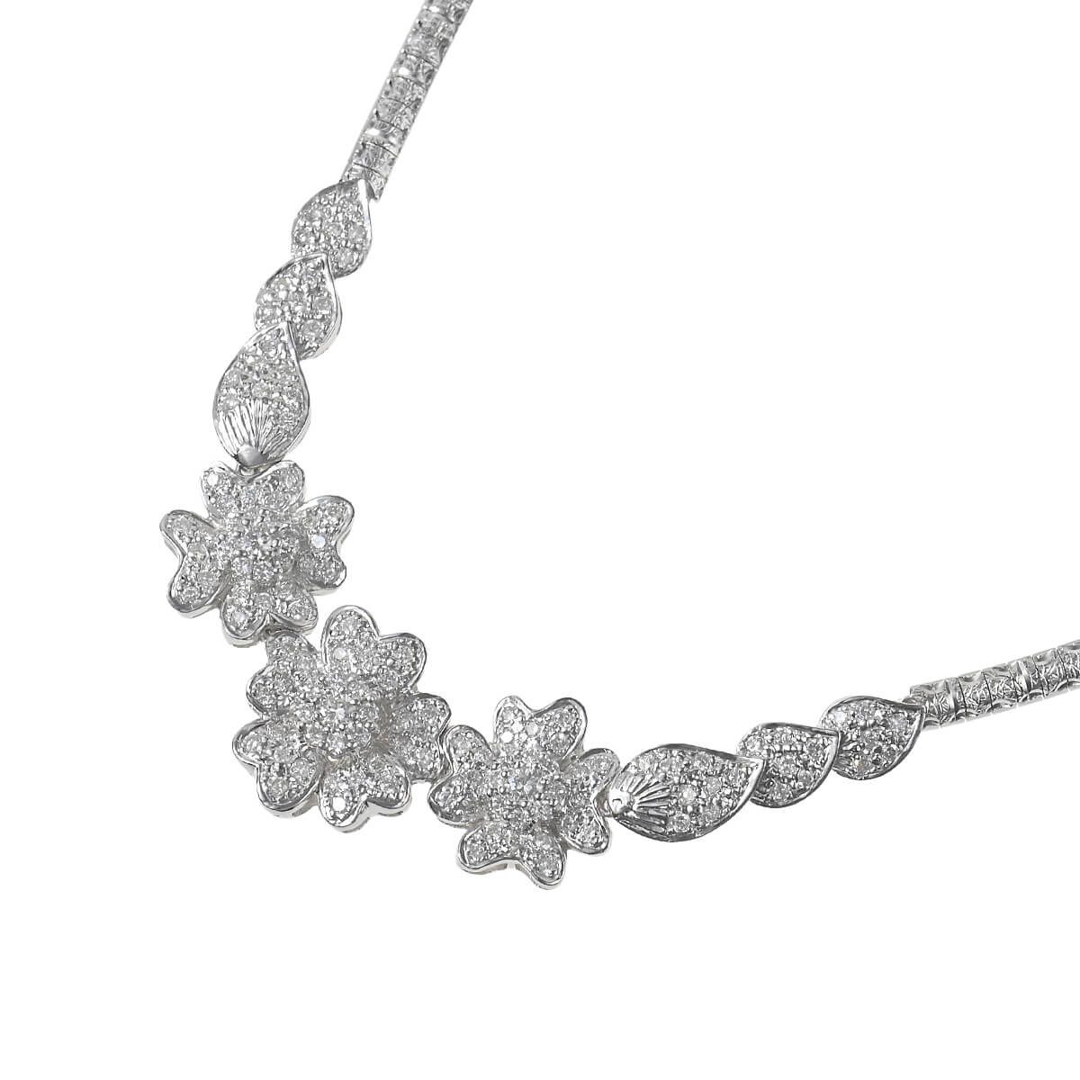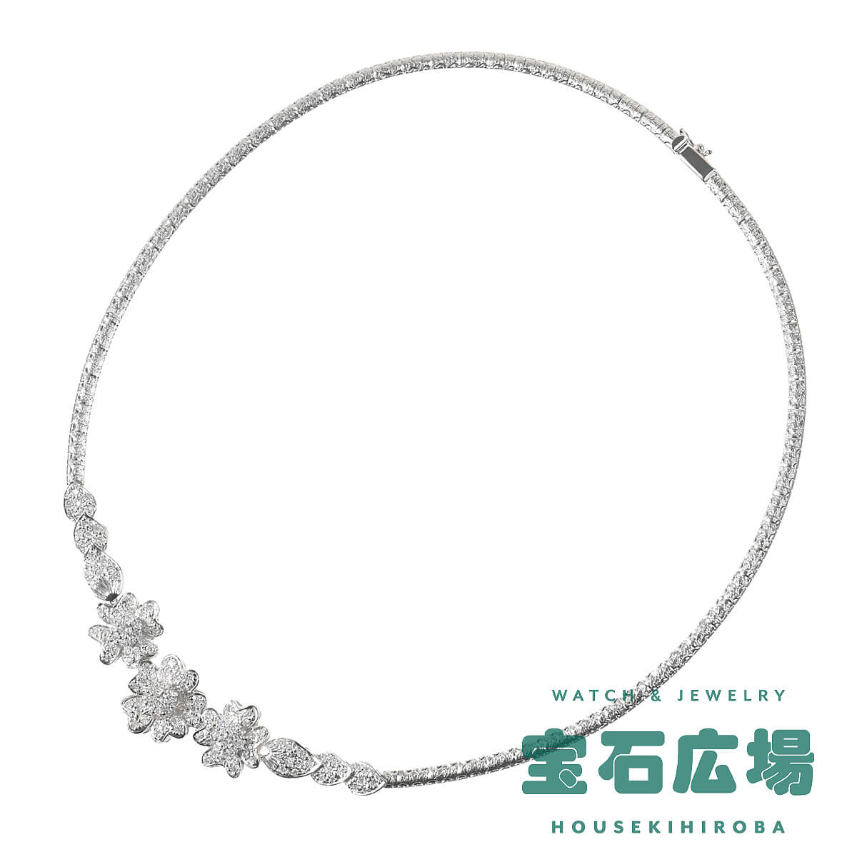 トータル2.27ctものダイヤモンドが贅沢にセッティングされた芸術的なフォルムのフラワーモチーフが連なる、プラチナ製チョーカー。花びら一枚一枚に丁寧にパヴェセッティングされた上質なダイヤモンドがデコルテをエレガントに、優美に印象づけます。美しくデコルテに沿うように、丁寧につくりこまれた技術の高さも魅力の、芸術作品のようなハイジュエリーです。