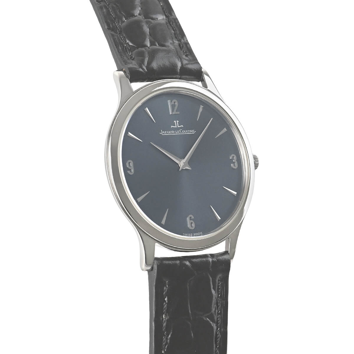 ムーブメントの厚さが1.85mmという薄さの「マスターウルトラシン」。実力派のマニュファクチュールに相応しく、その技術力を誇示するモデルです。