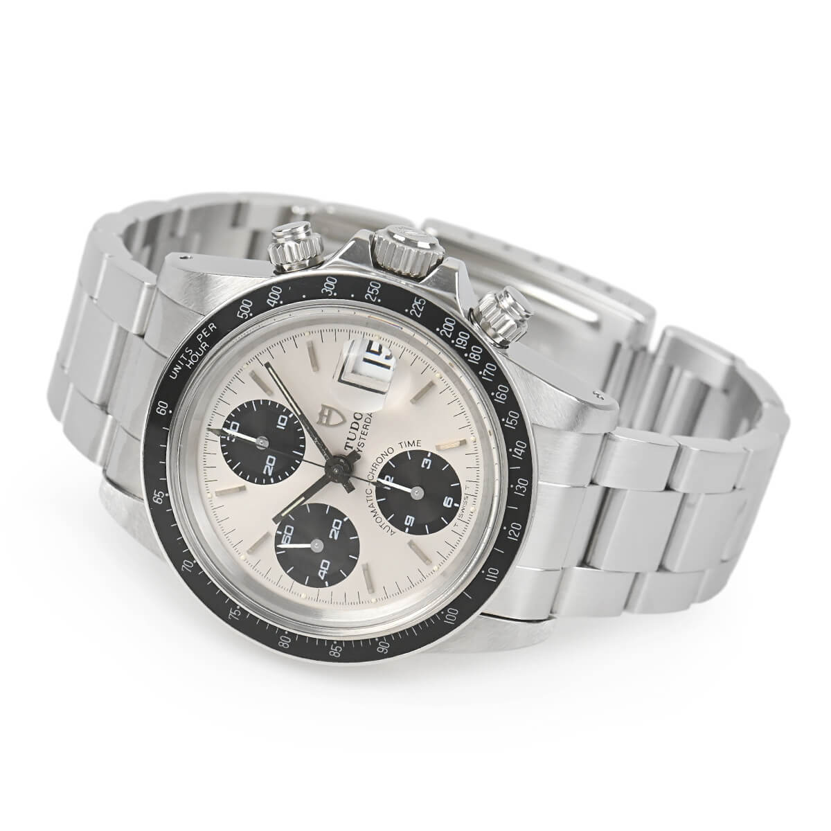 通称「カマボコケース」が良い雰囲気の「クロノタイム 79160」。ロレックスマークのリューズにオイスターブレスレットを装備しています。