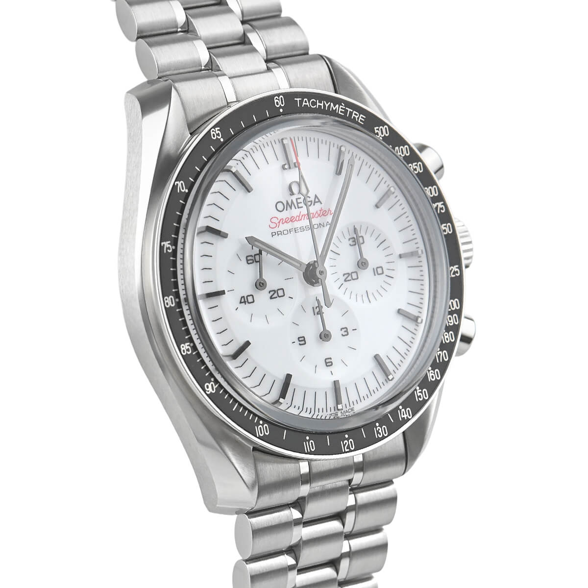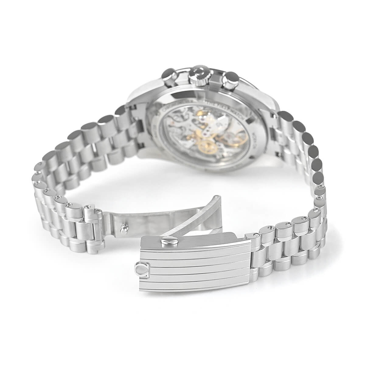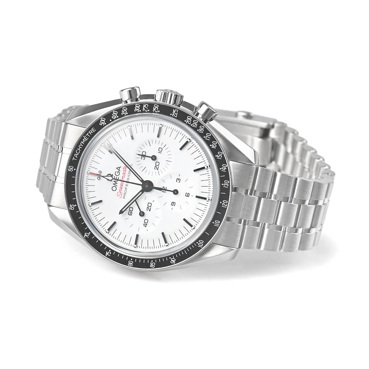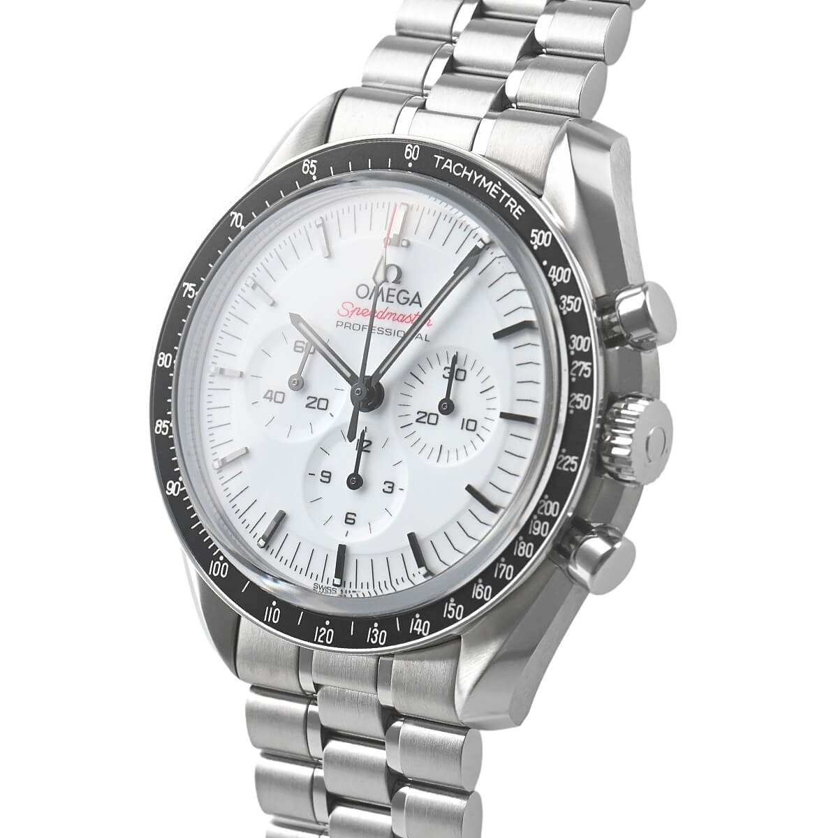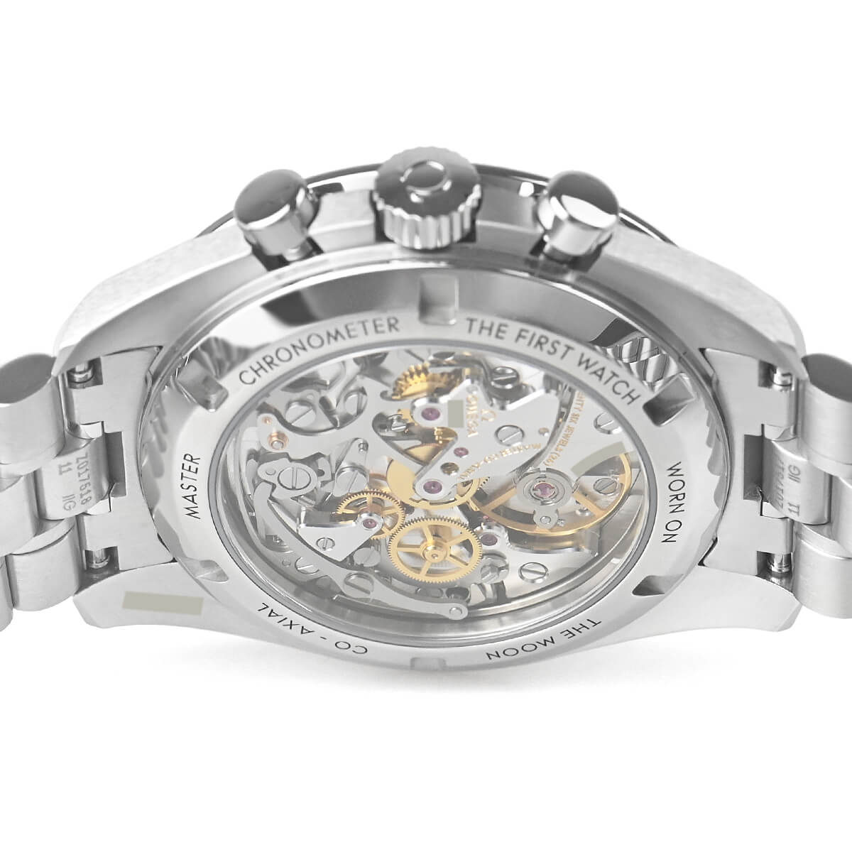 6度に渡る月面着陸プロジェクトの全てに提携された、伝説のクロノグラフ「スピードマスター プロフェッショナル」。陽極酸化処理が施されたアルミニウム製ベゼルリングには、実際に月面で着用された4thモデルのリングデザインに倣い「ドットオーバー90」のデザインが採用されています。