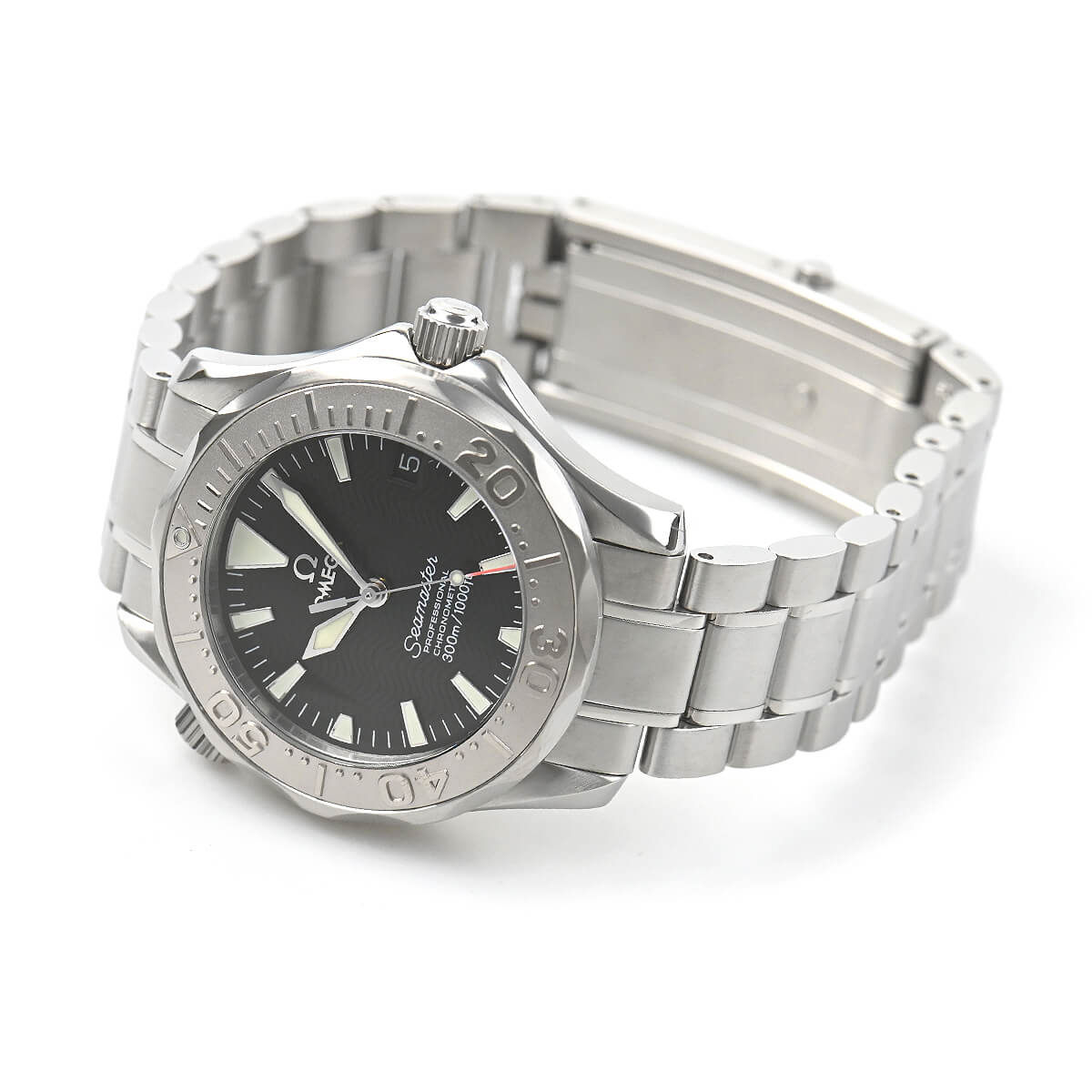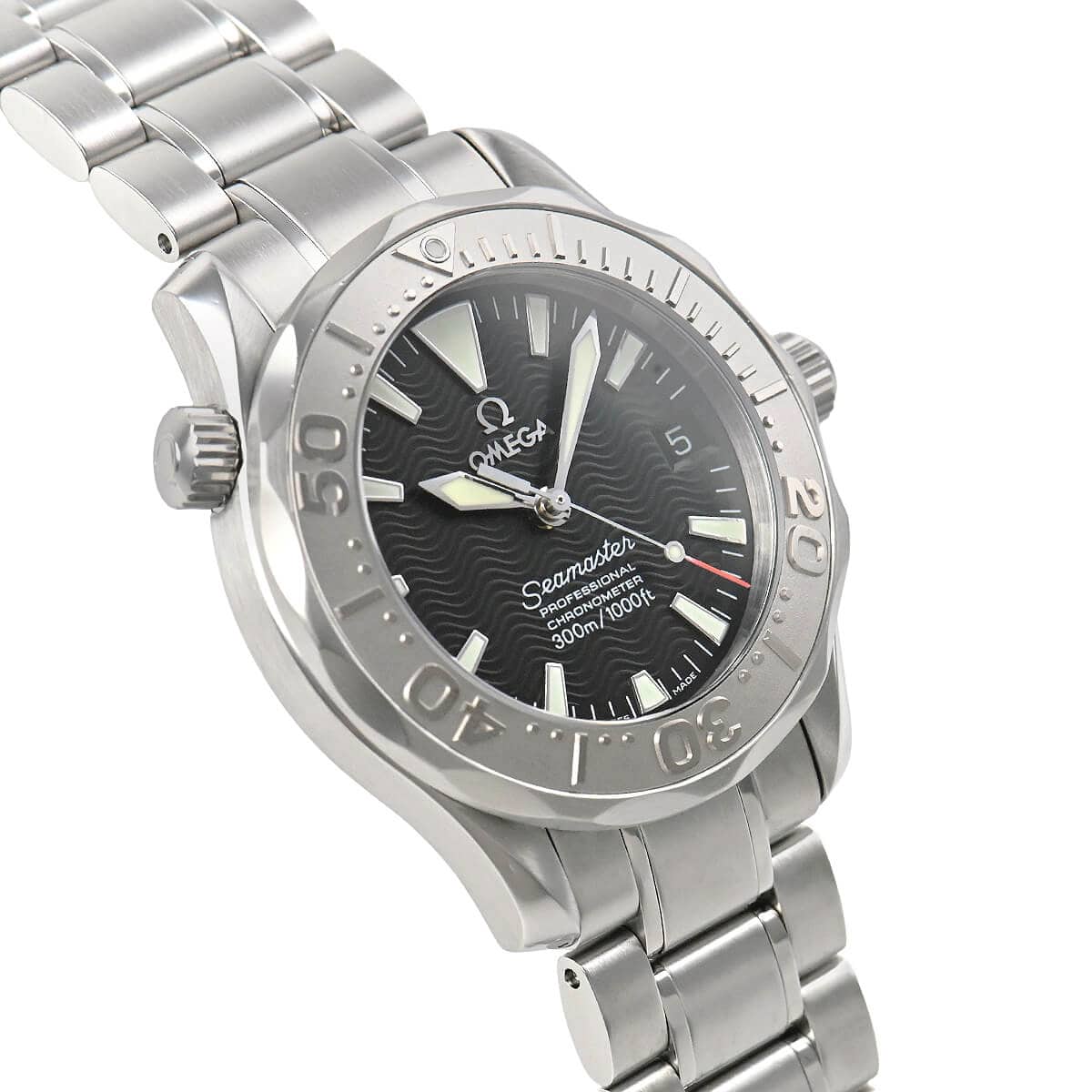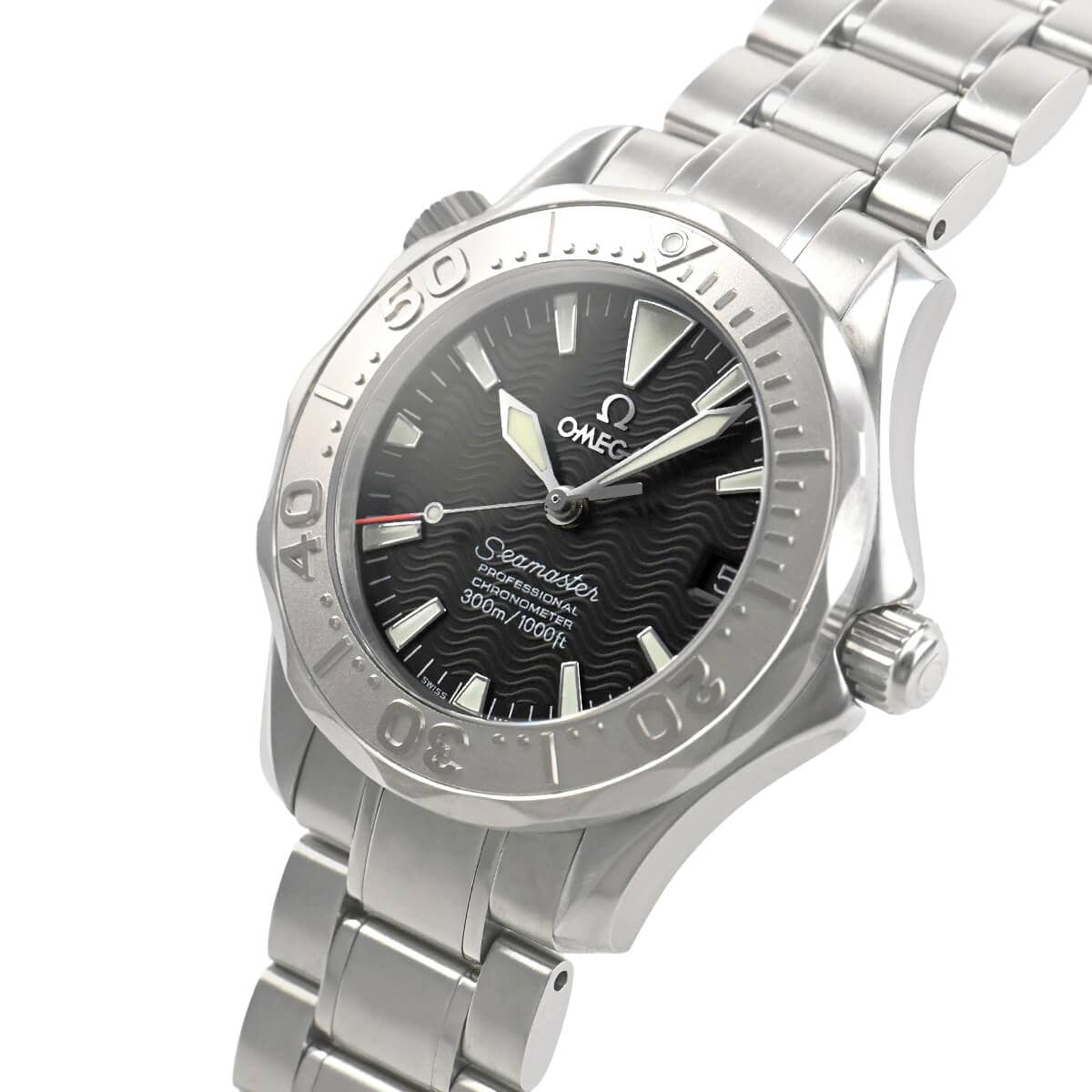 オメガの人気モデル「シーマスター」。ヘリウムガスエスケープバルブを装備し、300mの防水機能を誇る本格派のダイバーズウォッチです。