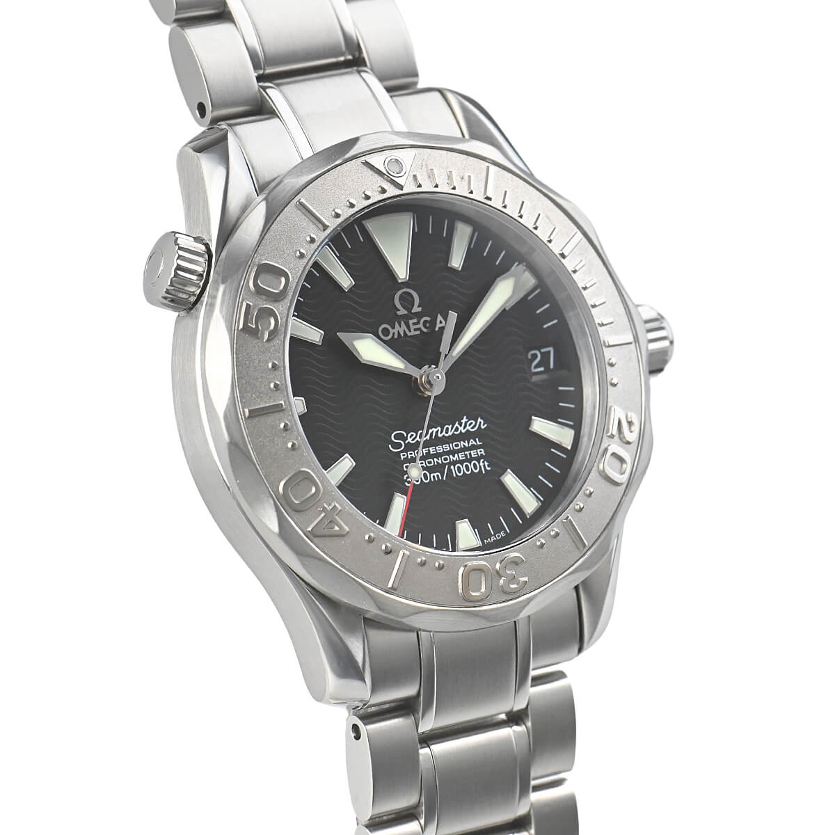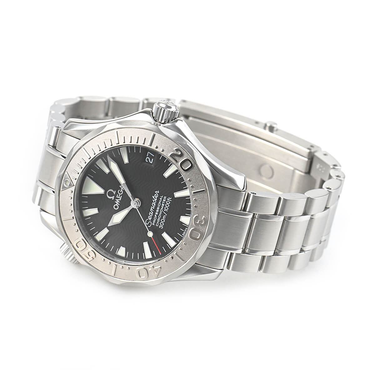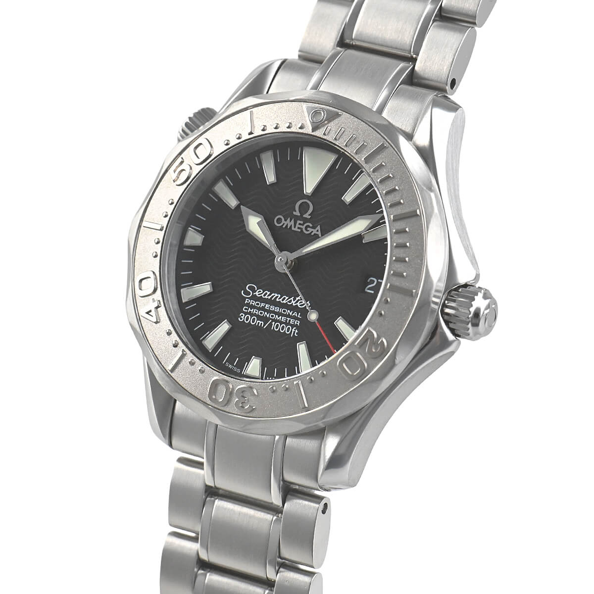 オメガの人気モデル「シーマスター」。ヘリウムガスエスケープバルブを装備し、300mの防水機能を誇る本格派のダイバーズウォッチです。