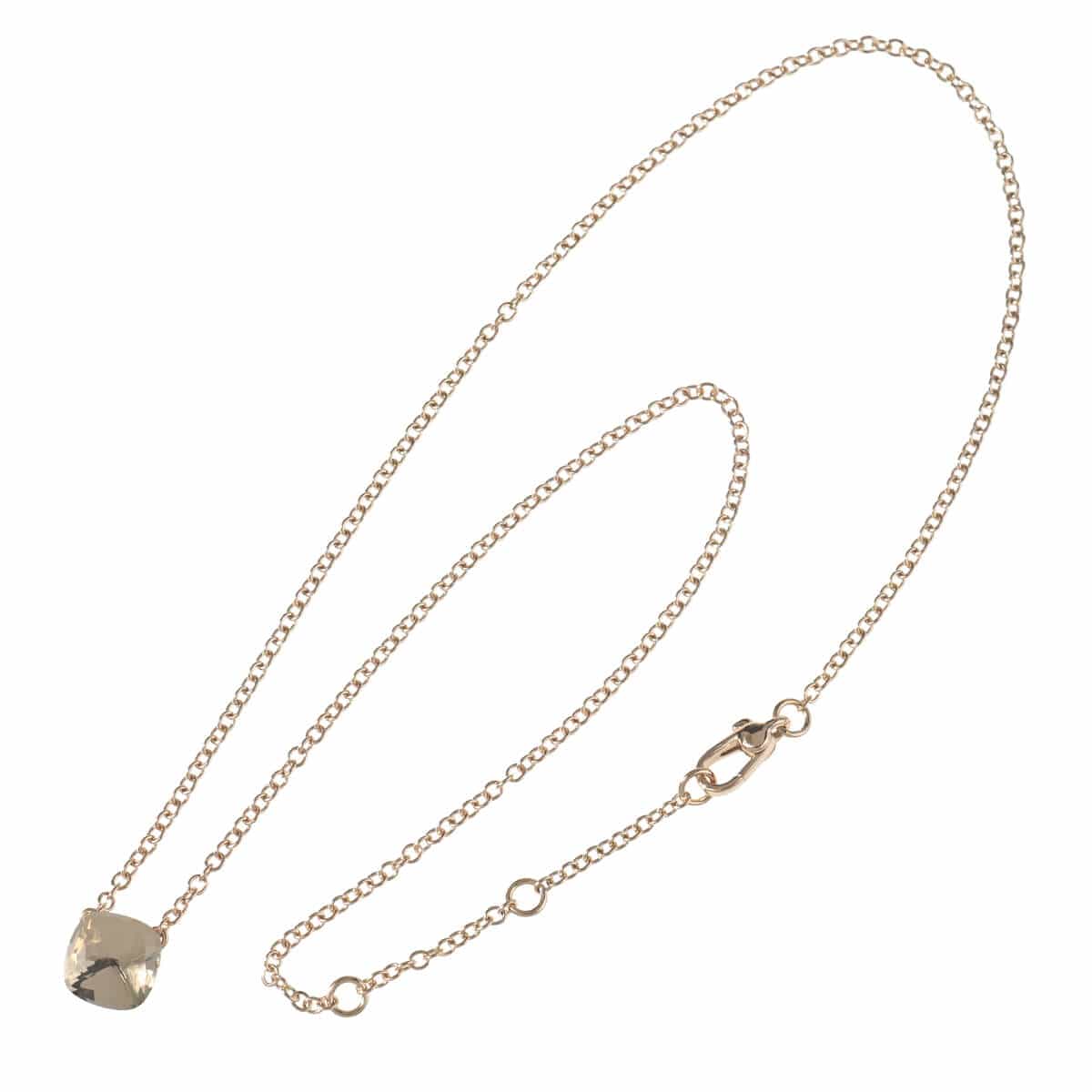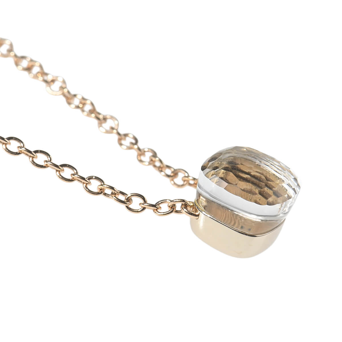『Pomellato(ポメラート)』のコンテンポラリーなスタイルのアイコン「ヌード」は、特許を取得している美しい多面のファセットカットとセッティングで、宝石がもつありのままの美しさを表現したジュエリーコレクション。繊細な色合いが美しいローズゴールドのチェーンに、カラーとスタイルによる限りないコーディネートで魅了する「ヌード」の中でも、もっともシンプルで、どんな宝石ともレイヤードしやすい「ホワイトトパーズ」をあしらったプチサイズのペンダントです。ポメラートのアイコンリングのシックなミニマリストスタイルを具体化している、エレガントなペンダント。まるで裸の石が肌のうえにのっているような、天然石ならではの神秘的なたたずまいを最大限に生かしたミニマムで洗練されたデザインは、天然石そのものの美しさをスタイリッシュに惹き立てています。