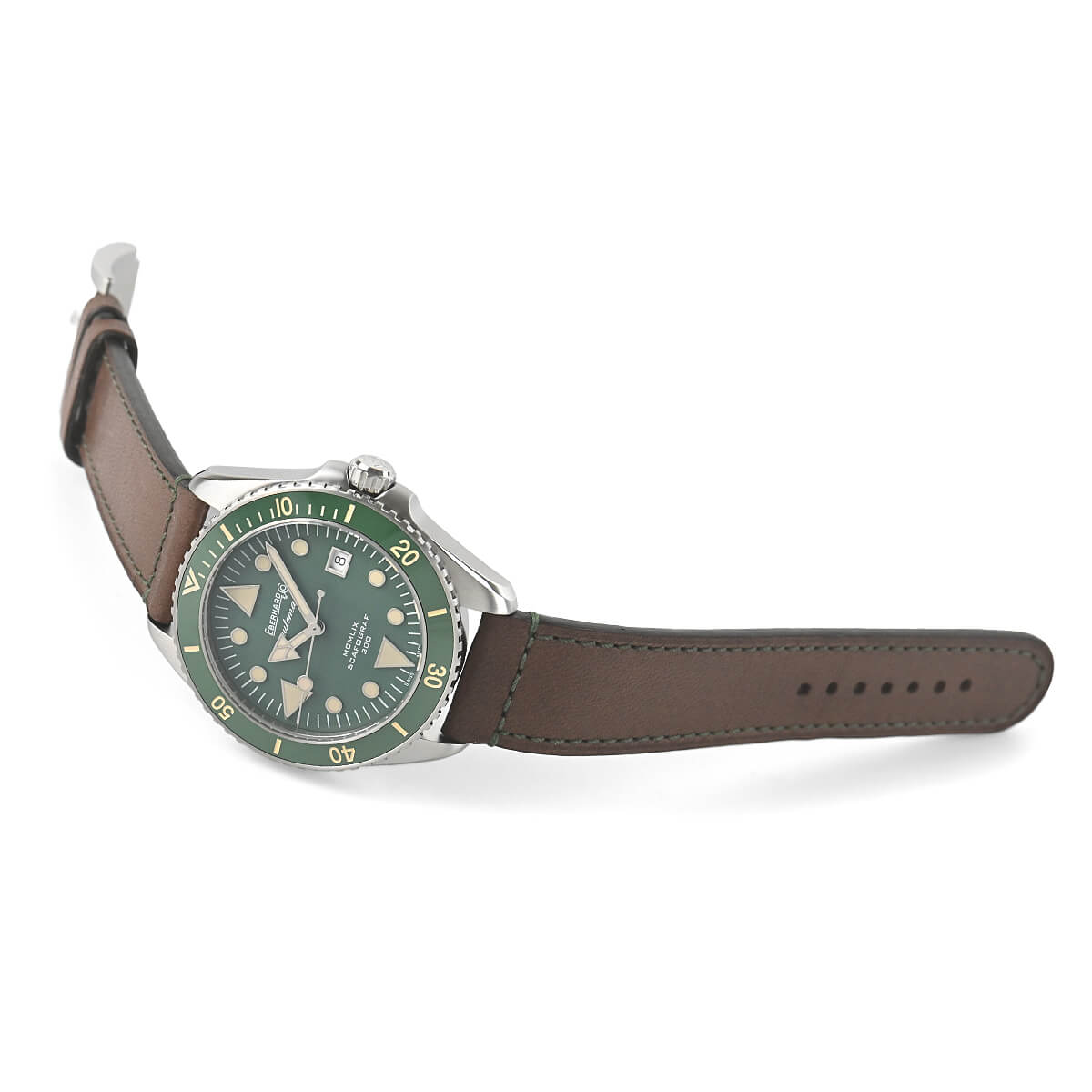 1959年にエベラールが初めてダイバーズ・ウォッチを発表した時からのペットネーム『スカフォグラフ』。ダイビングの父と呼ばれる伝説のフリーダイバー、レイモンド・ブッチャーと、彼の教え子で初の女性ダイバー、ルチアナ・シビコが『スカフォグラフ』を愛用。