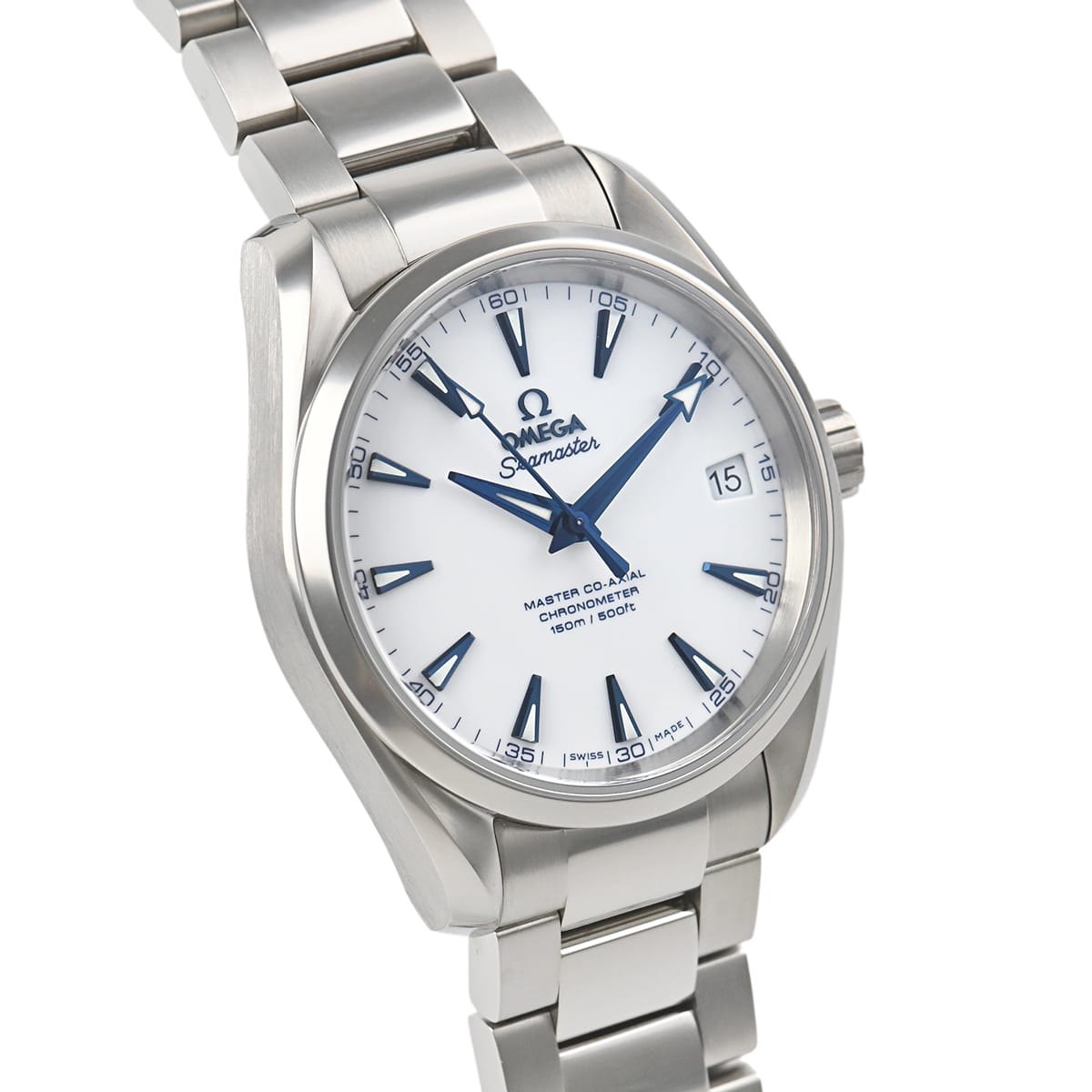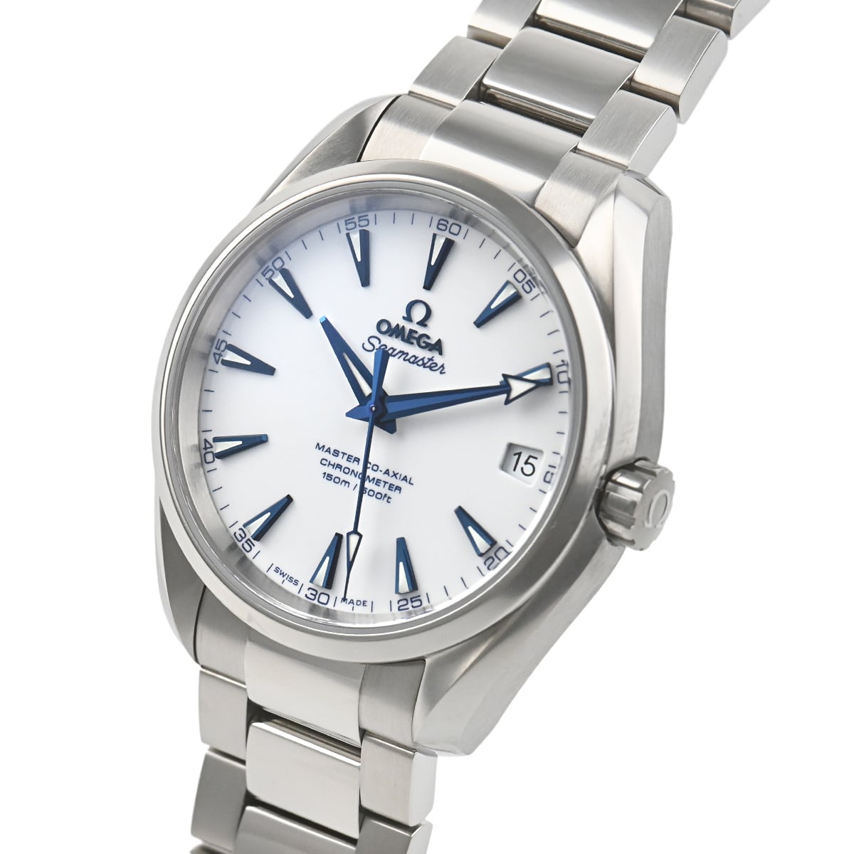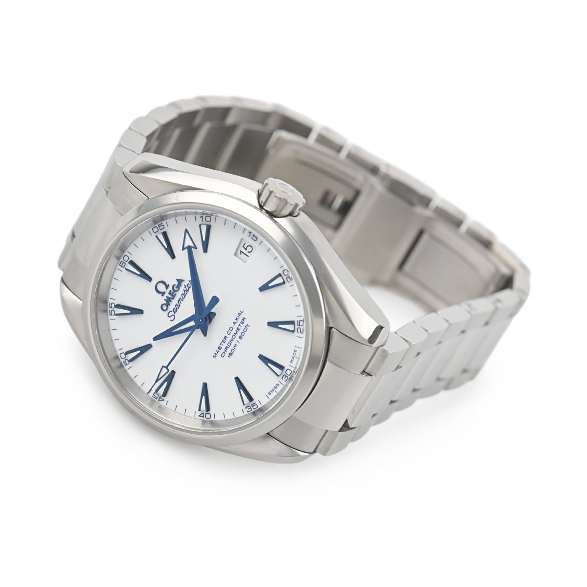 ラッカー仕上げのホワイトダイアルにブルーのインデックスと針がよく映えるモデルです。