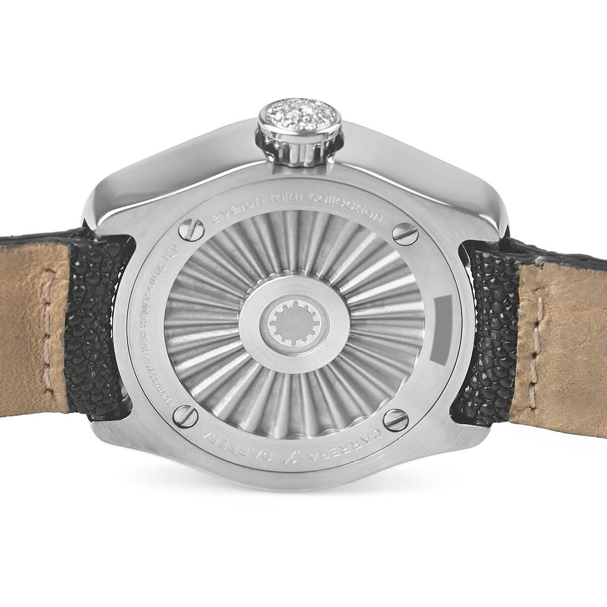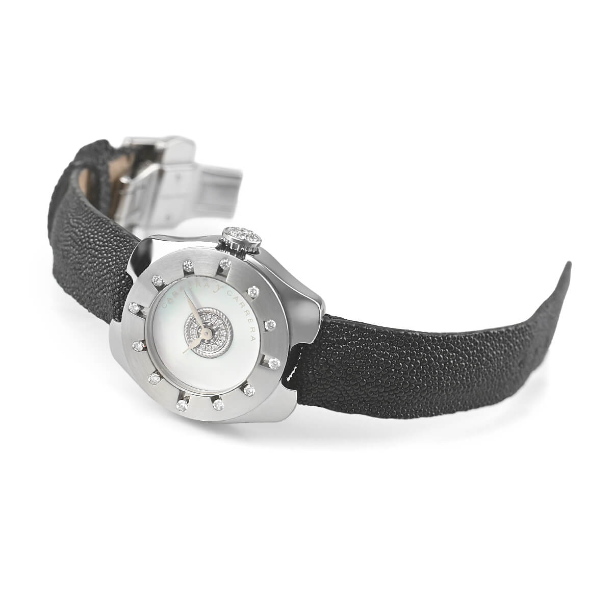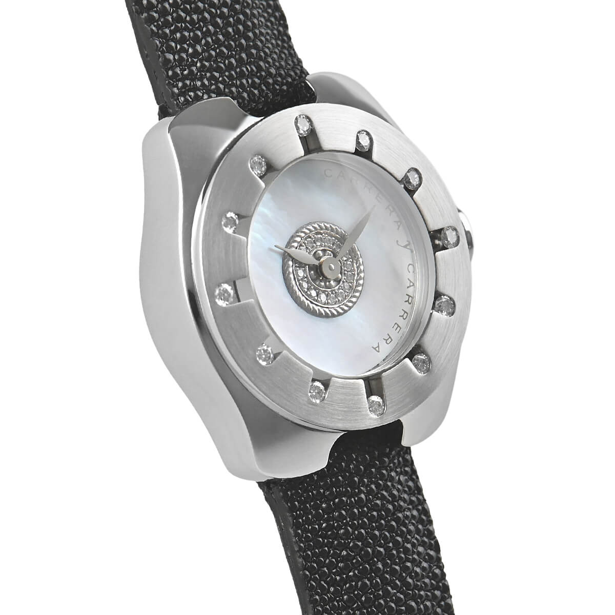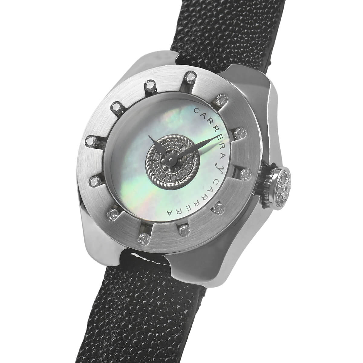 ベゼルの12ポイントのダイヤモンドがアワーマーカーとして機能します。