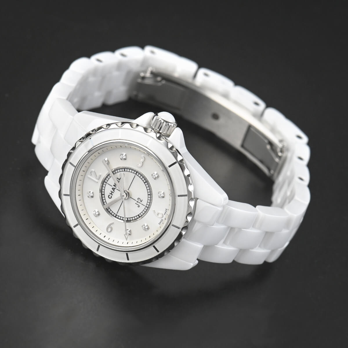すっかりスポーティーなラグジュアリーウォッチの定番品として定着した感がある「J12」。こちらは29mmのレディースモデル。