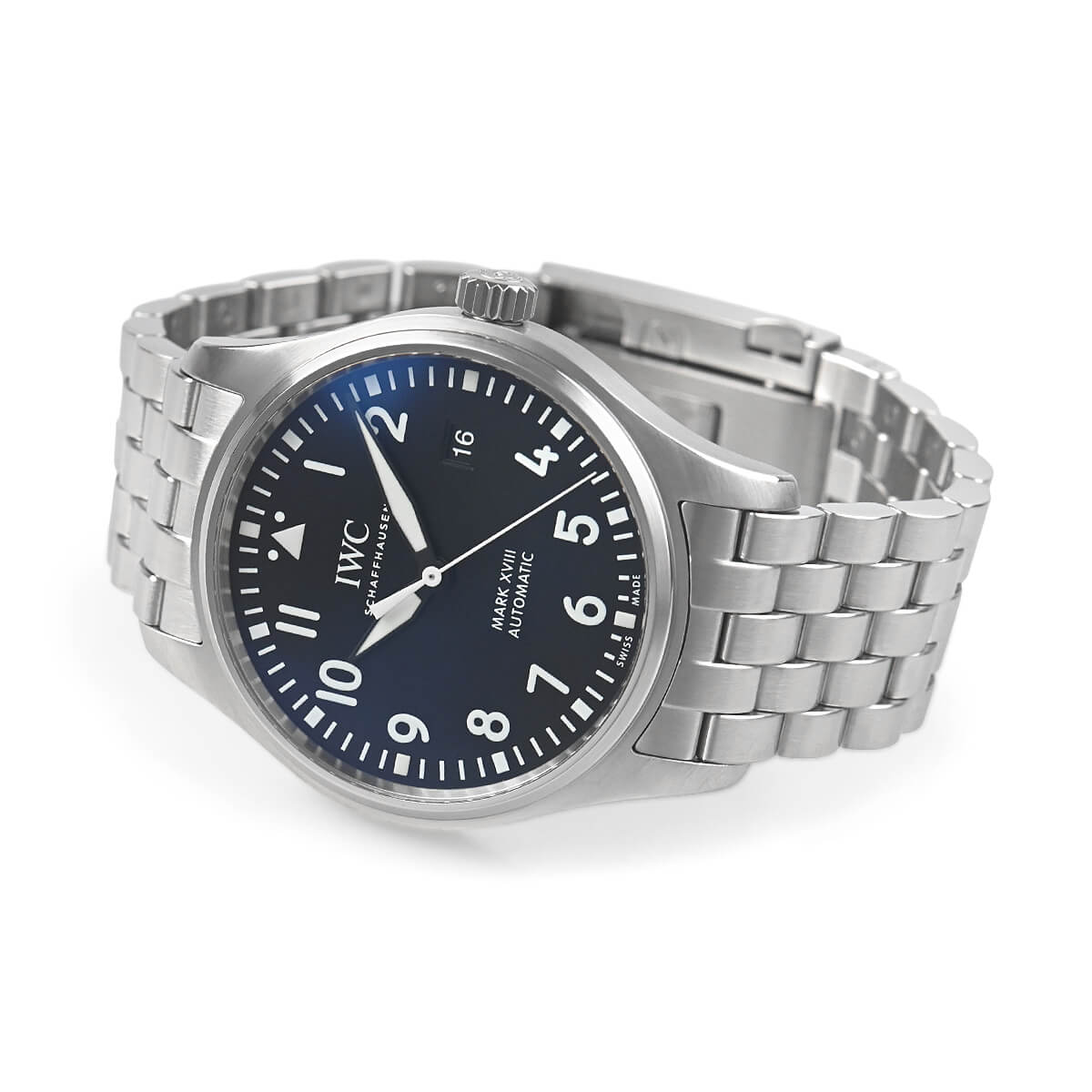 「パイロットウォッチ マーク18」が入荷しました。前モデルのマーク17ではデイト表示に3日間表示を採用していましたが、こちらのモデルは一般的な表示方法に回帰されています。